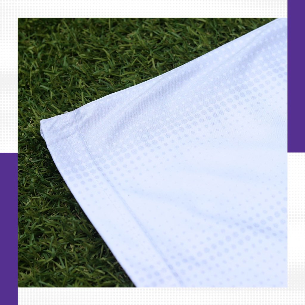 The back is predominately white, which features the back of shirt sponsor Emcon Utility Management. The shirt is complimented with white shorts and socks with purple details. Reach Digital Telecoms continue to sponsor the back of the shorts this season alongside the home shorts.