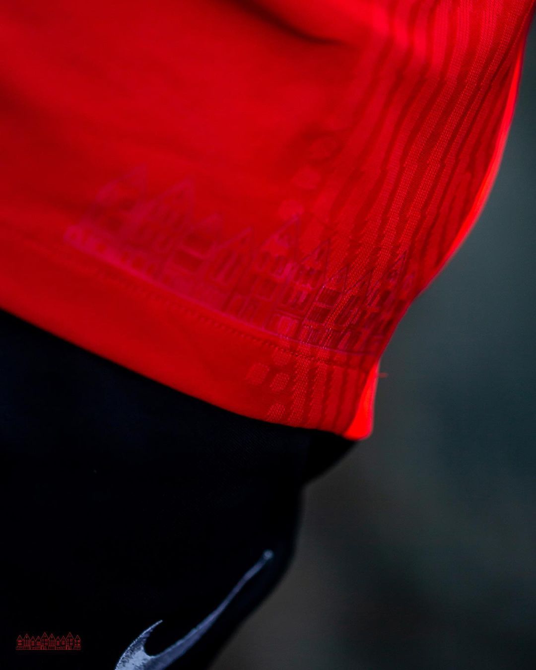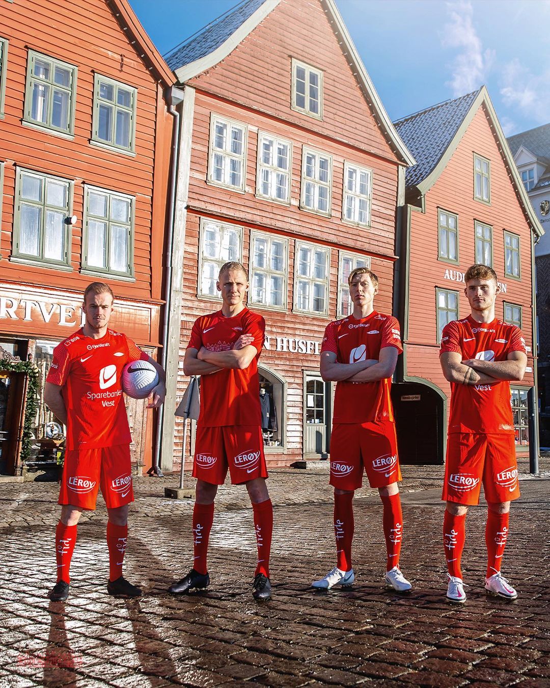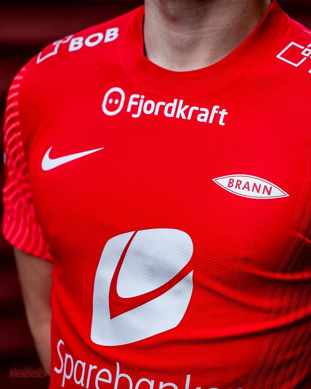 The sleeve patterning forms part of the VaporKnit construction of the shirt on the match version, which will be worn with matching red shorts and socks in the Bergen, Norway club’s Eliteserien 2021 encounters.