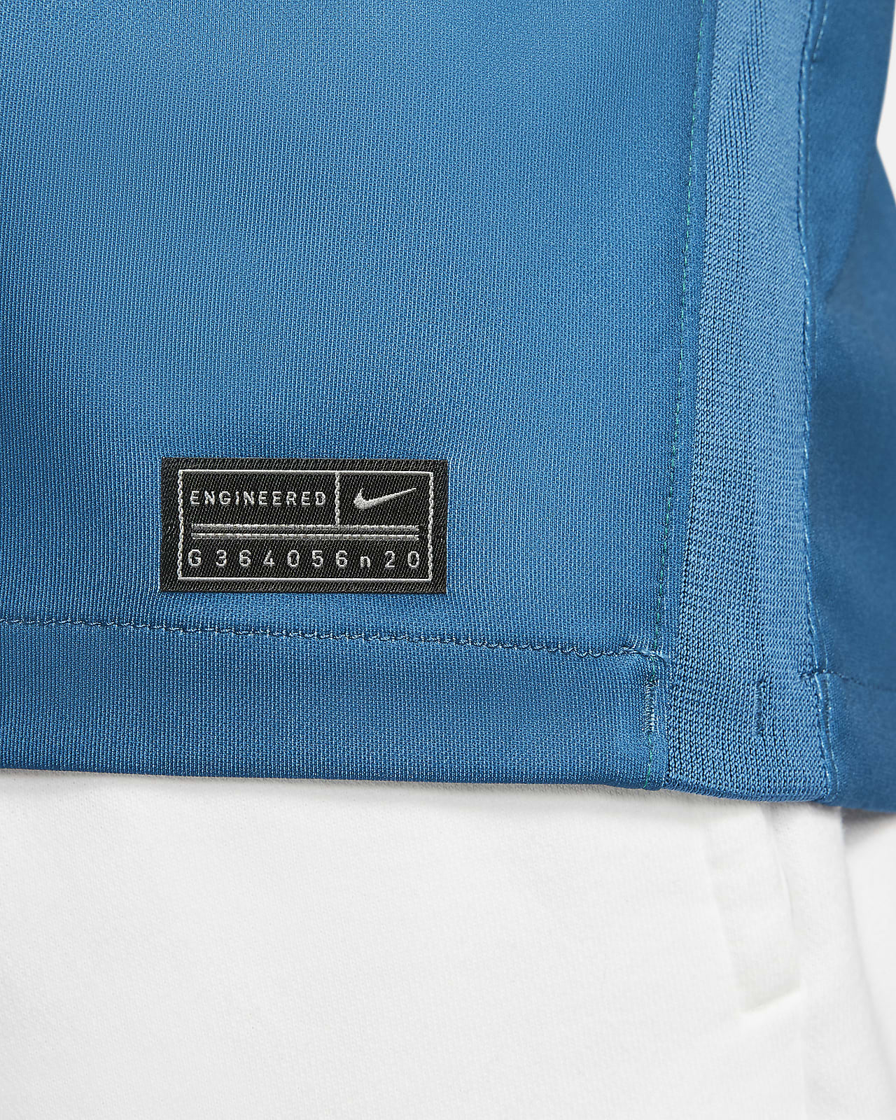 The Swoosh on this primary change shirt is in white, while the crest patch is in full colour and, when called upon, the shirt will be combined with Marina shorts and socks.