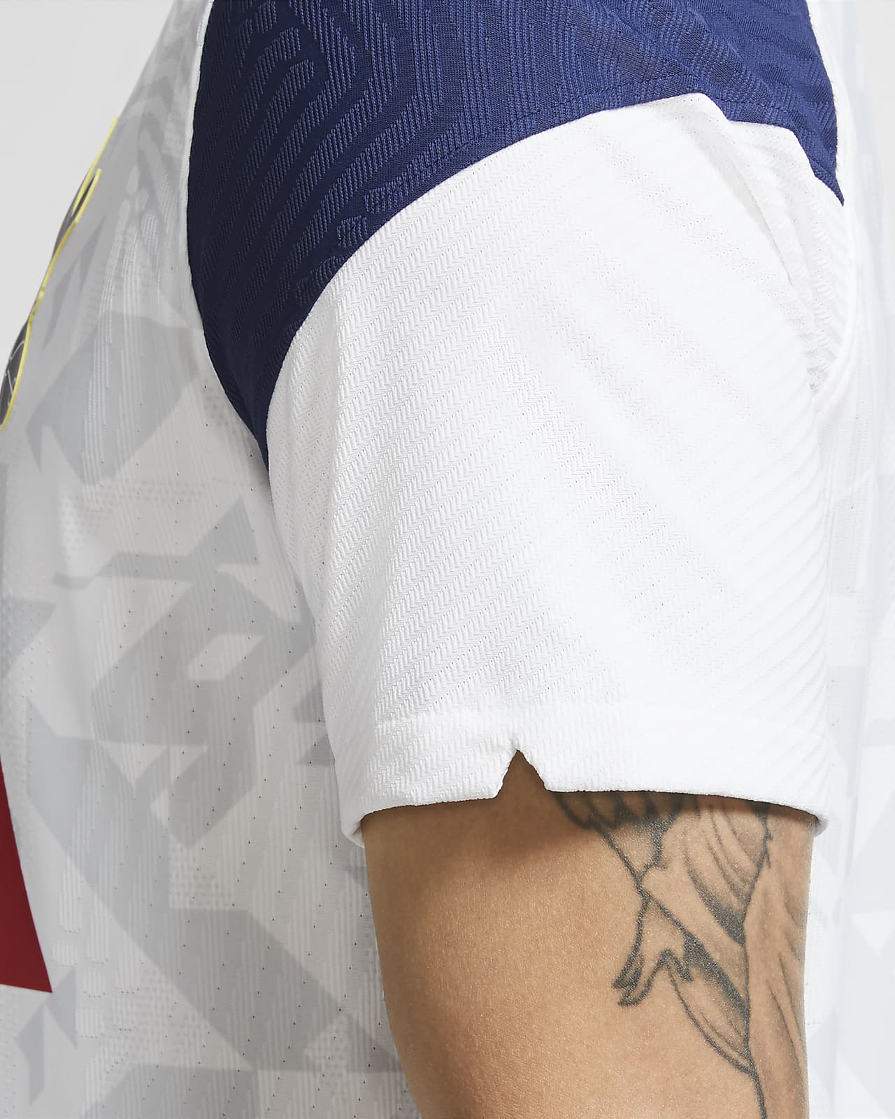 Inspired by a new era of football and innovation, Tottenham Hotspur’s new home kit uses dynamic color blocking and a bespoke knit pattern to add a futuristic quality to the club’s traditional look.