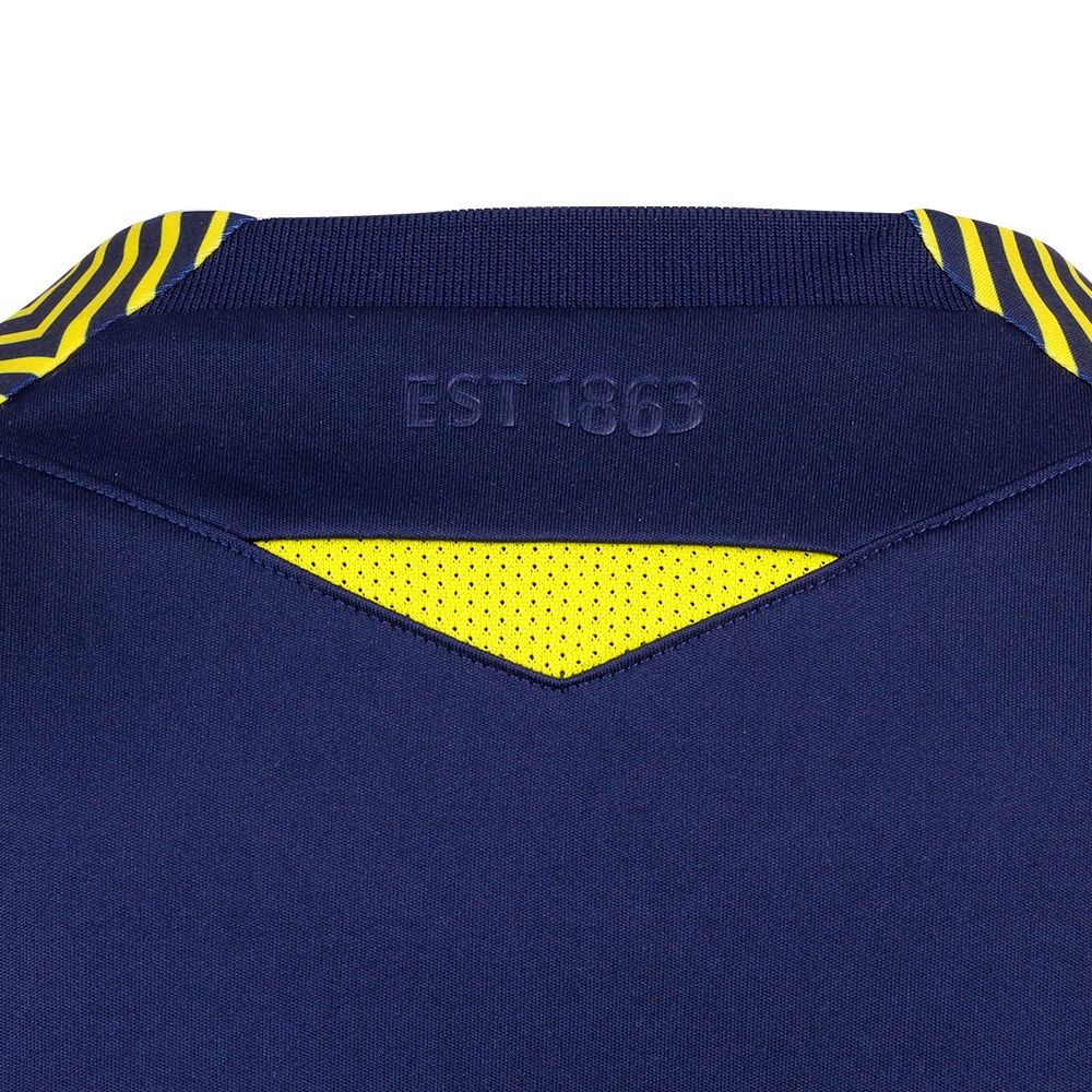 The new away shirt takes colours from past kits and puts a modern twist on them, with an optical zigzag design in yellow on the sleeves.
