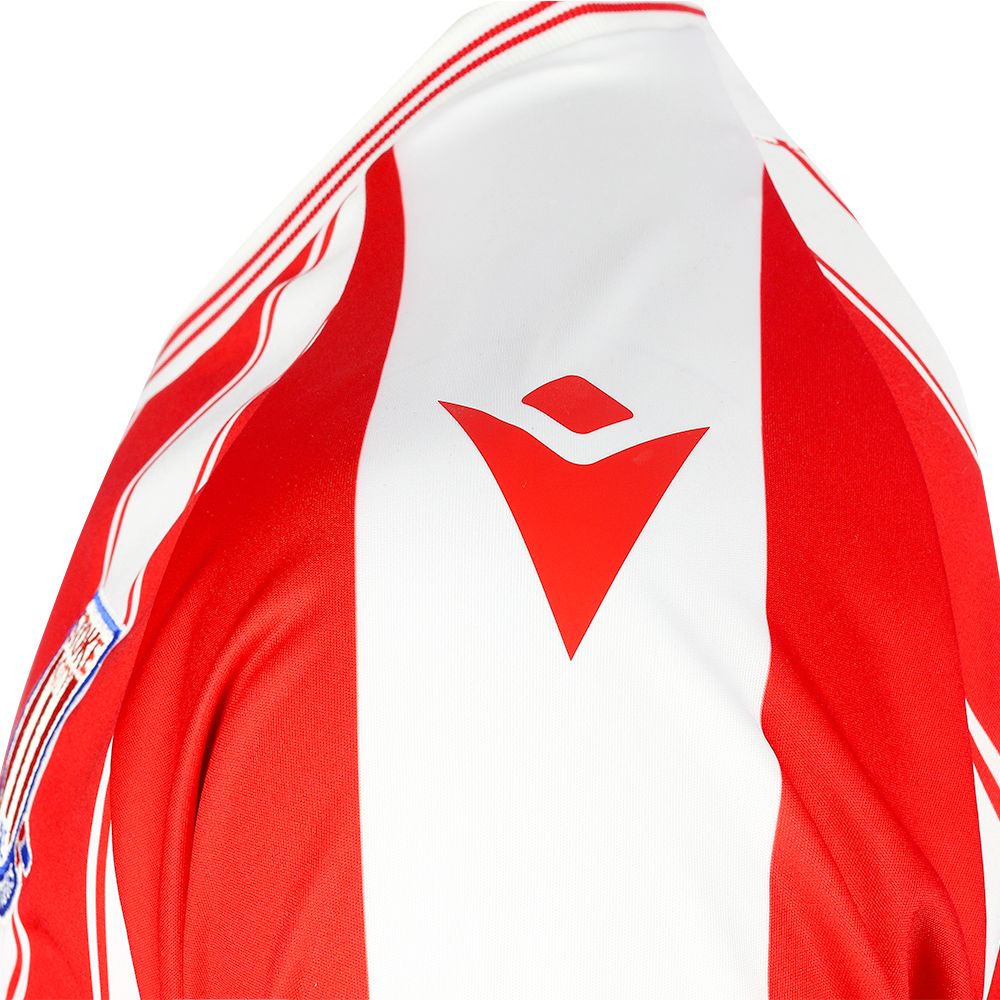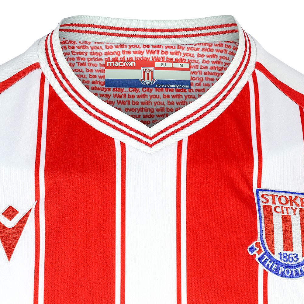 Manufactured using M-PerformanceSystem fabric for increased comfort, maximum breathability and moisture absorption. Shirts have fully embroidered Stoke City Crest and Macron logos across the chest area.