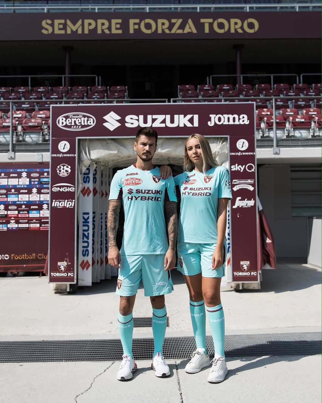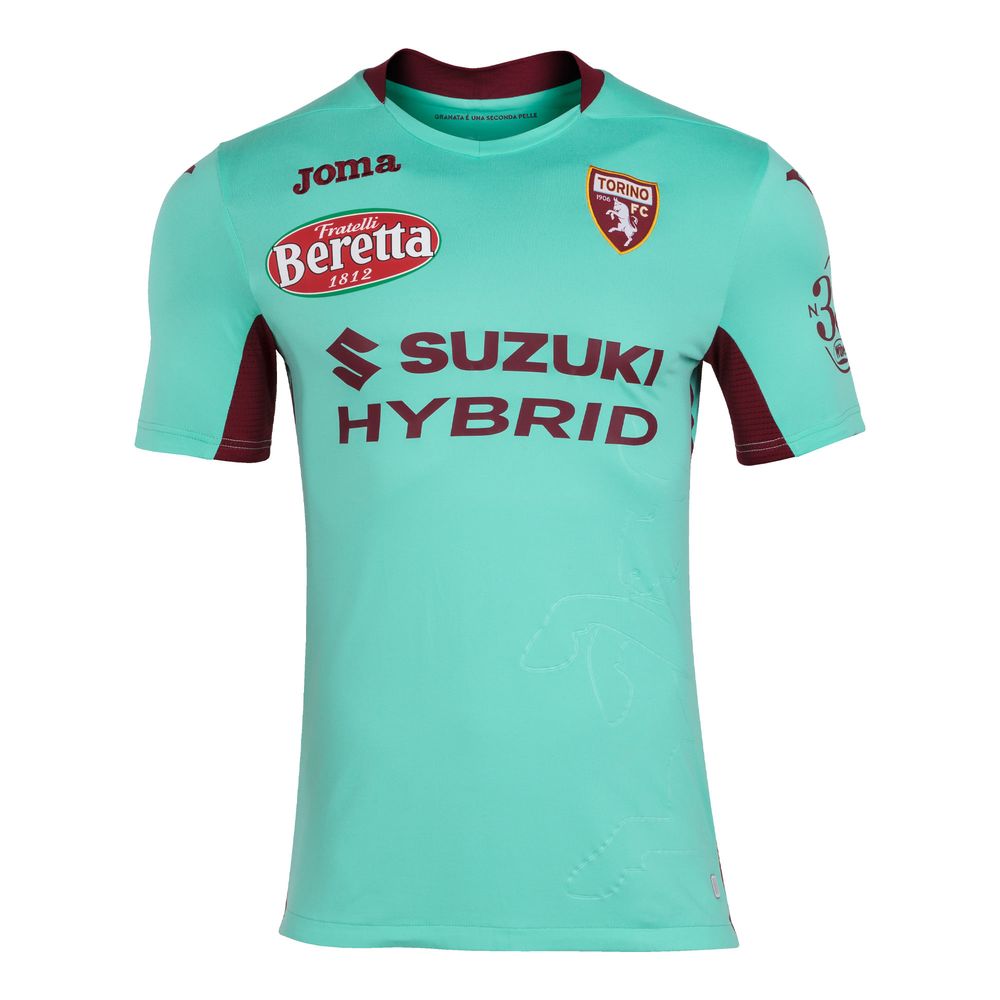 Continuing the recent trend for mint green designs, this is the new, 2020-21 season Torino FC Third kit by Joma.