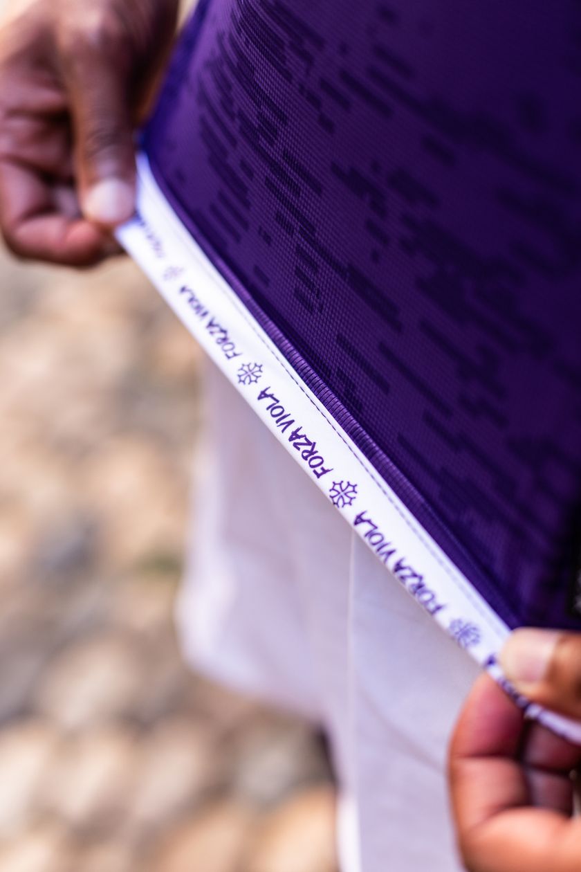 The inside of the hem carries the rallying cry “Forza Viola” and the shirt will be worn with white shorts and violet socks.