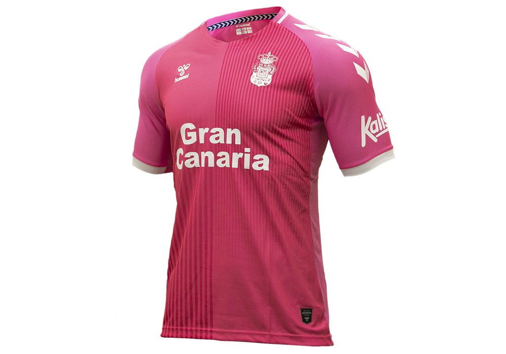 The crests are in full colour on the first and second outfits, but the Canaries-based club’s all-pink Third - which incorporates quarters as a sublimation print - has a monotone white simplification of the club badge.