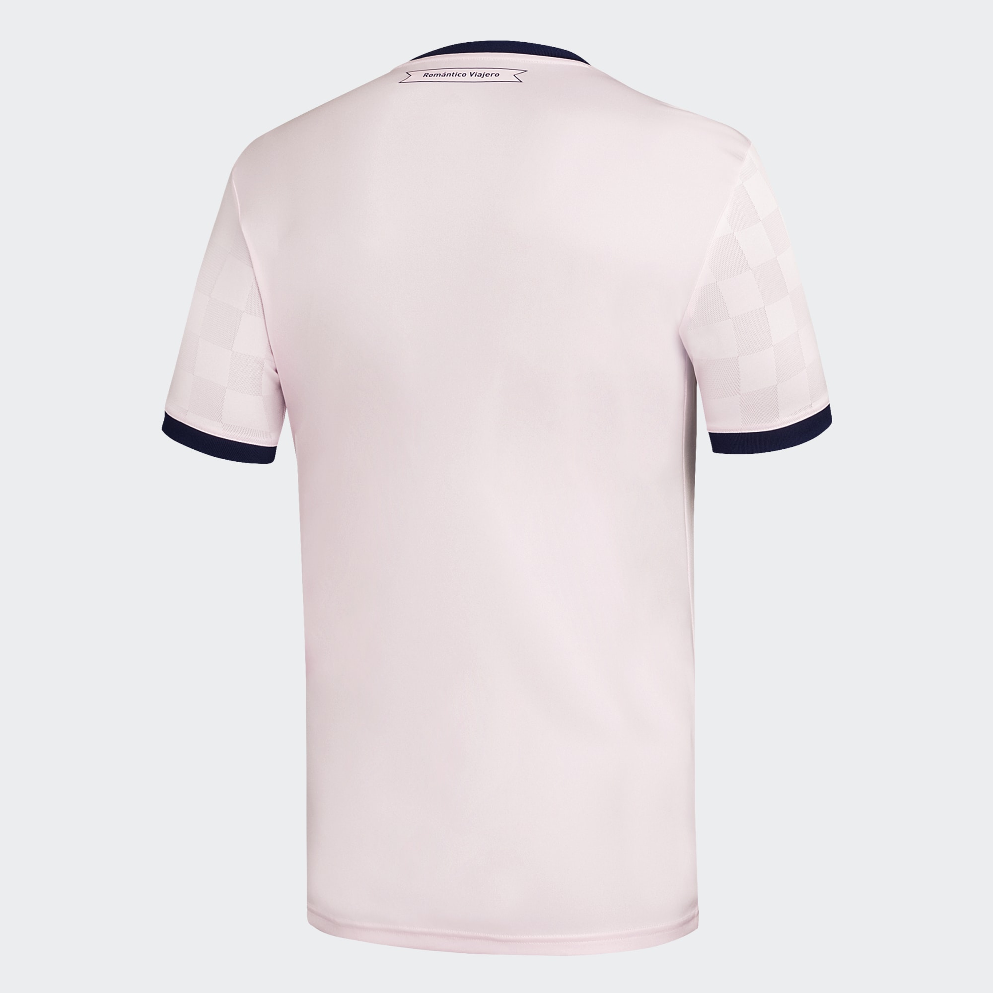 The shirt, when called upon in the event the Santiago side are forced to change, will be combined with pink shorts and socks.