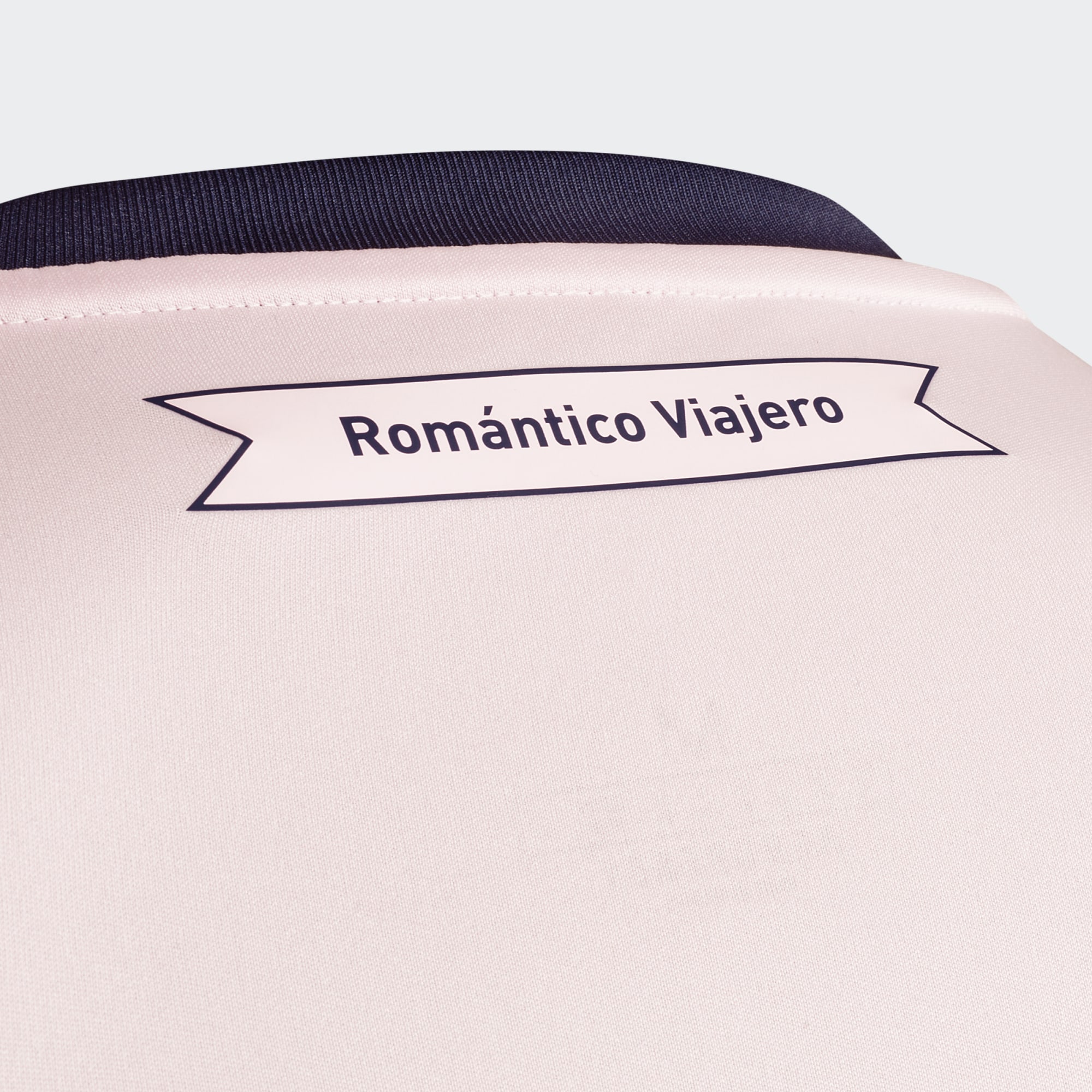 Both of Los Azules’ famous crests appear on the chest in full colour, with the adidas logo and stripes, the “V”-style neck, the cuffs and Petrobras sponsorship branding all in navy. There is also a “Romántico Viajero” detail on the upper back.