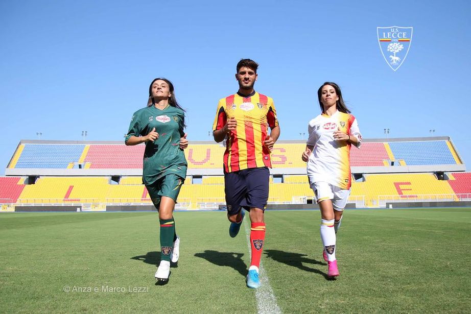These are the current, 2020-21 season Home, Away and Third kits for Italian Serie B side US Lecce.