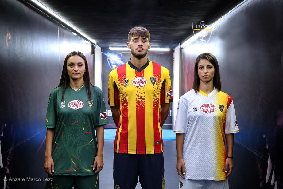 A stylised yellow and red striped Home for the Giallorossi, a white and grey Away with a yellow and red fade-out stripe - which features the names of club members - and a green Third which gives prominence to the club crest’s locally oft-seen holm oak - also symbolic to the city of Lecce.