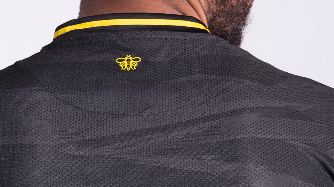 The black crew-neck jersey, featuring yellow trim with a subtle integrated camo print, will be worn on-pitch with home black shorts and socks.