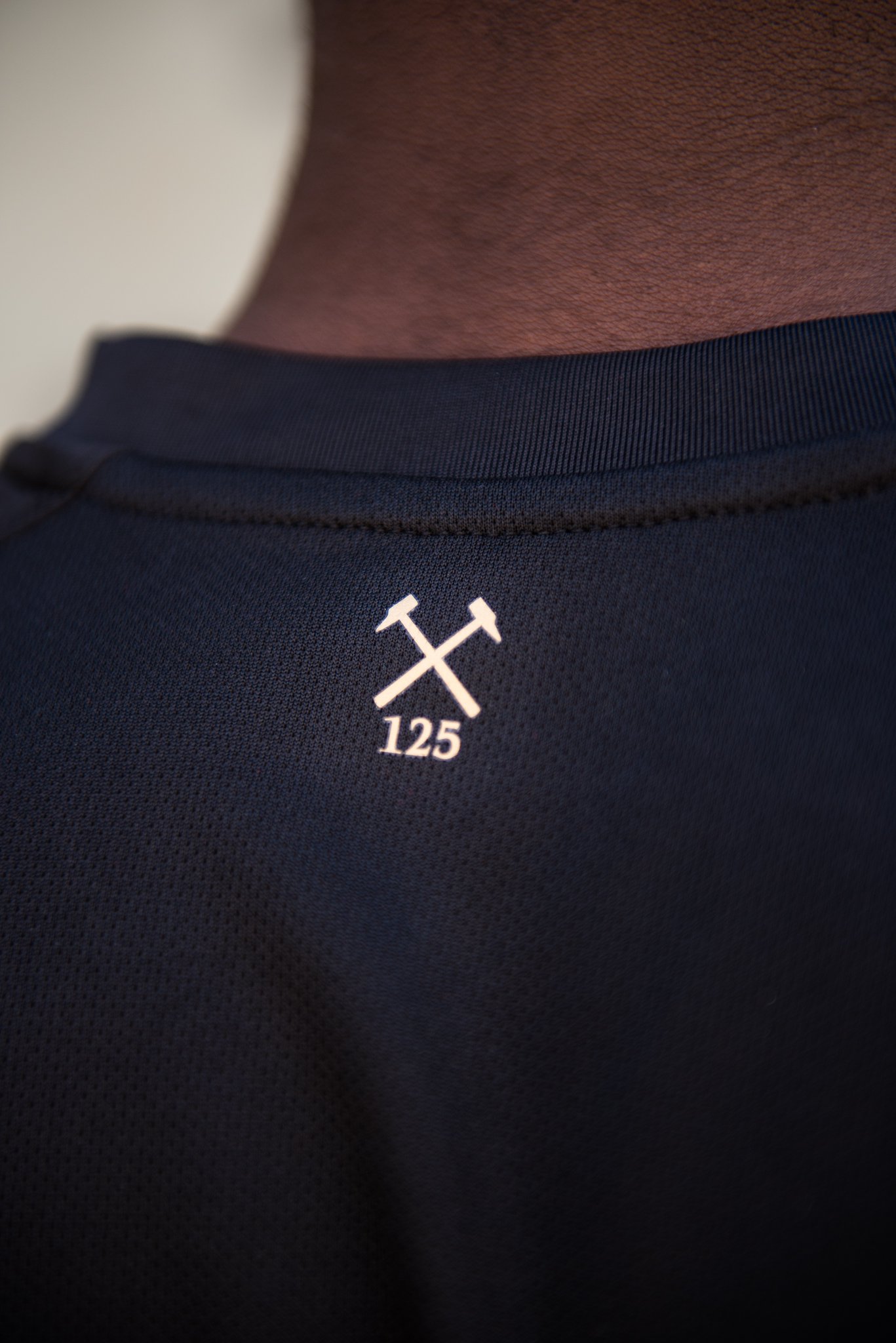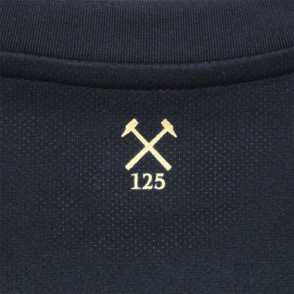 The 2020/21 Third Kit shirt is a celebration of West Ham United and the crossed hammers that are synonymous with the Club, with the black body of the kit incorporating the commemorative 125th anniversary crest in black and gold. A stylised rib neckline is also accompanied by stacked diamond-gold embroidery and a bespoke gold neck sign off.