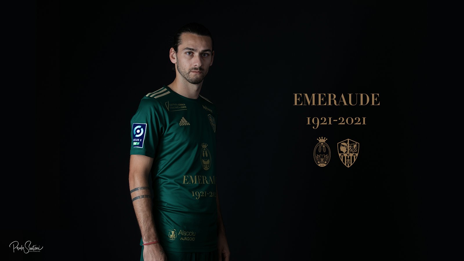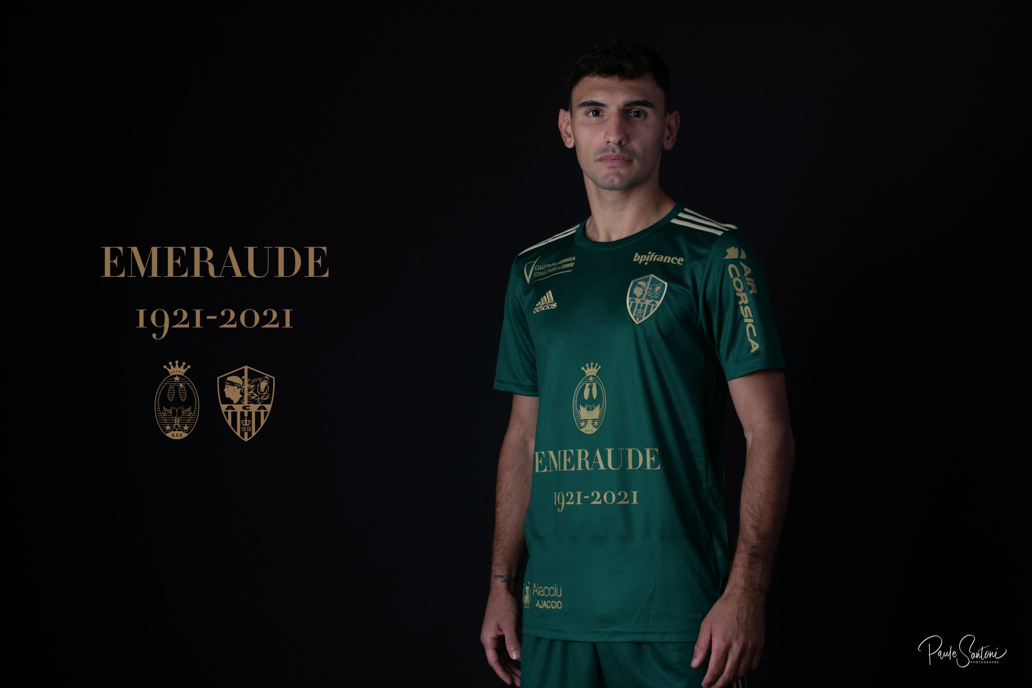 This is the 2021 Ajaccio “Emeraude” (Emerald) shirt.