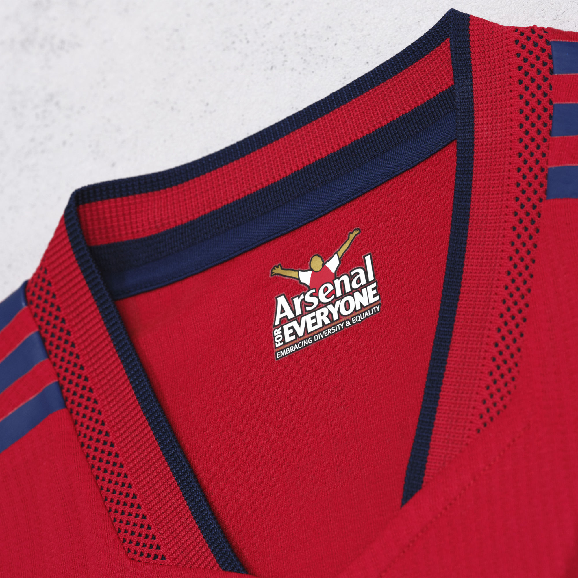 As with the 2021/22 away kit, the Arsenal For Everyone logo features on the inside collar of the shirt. Launched in 2008 as a celebration of the diversity of the Arsenal family, the Arsenal For Everyone initiative ensures that everyone can feel an equal sense of pride and belonging to the club.