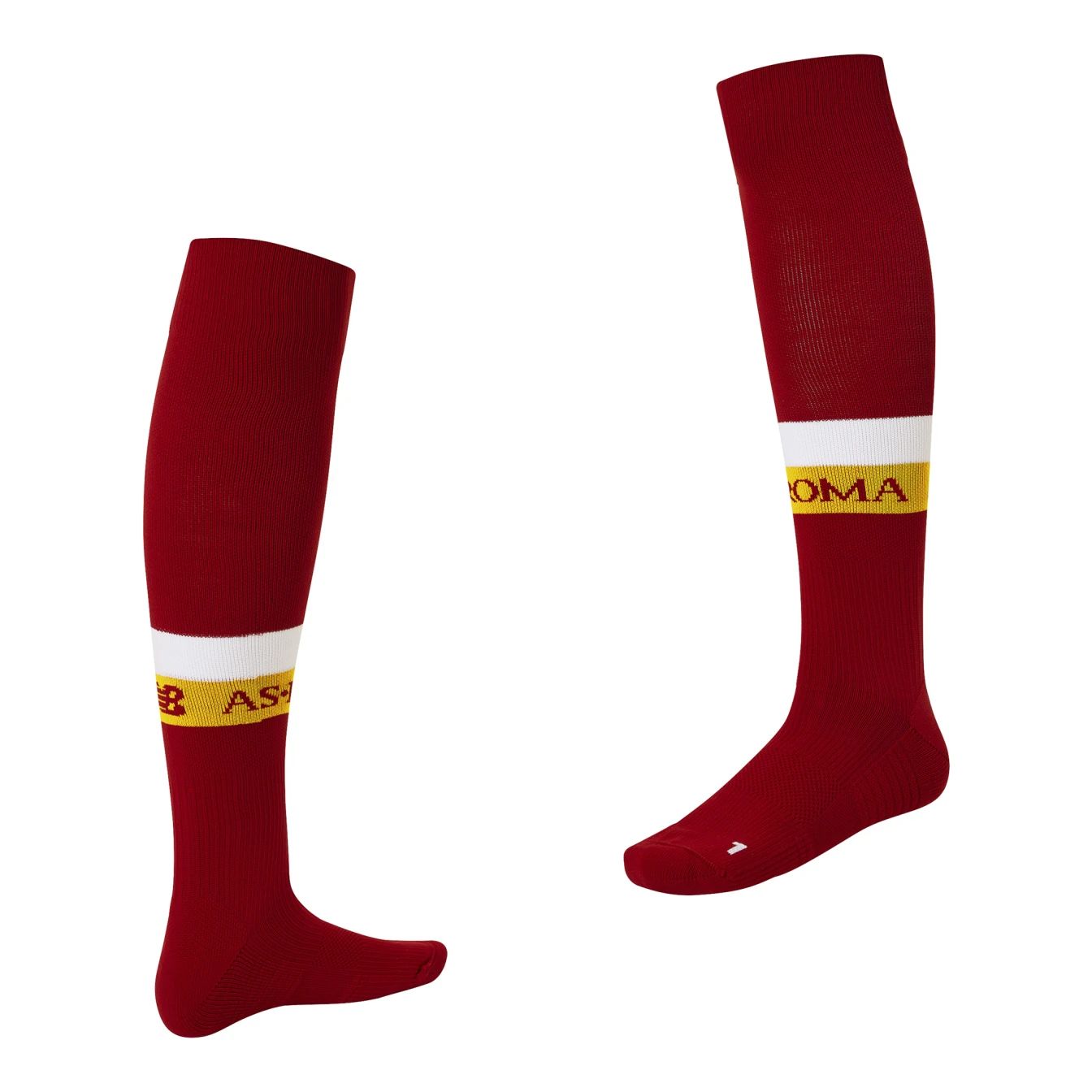 AS Roma’s traditional rich red socks are completed with coloured hoops to match the home strip design.