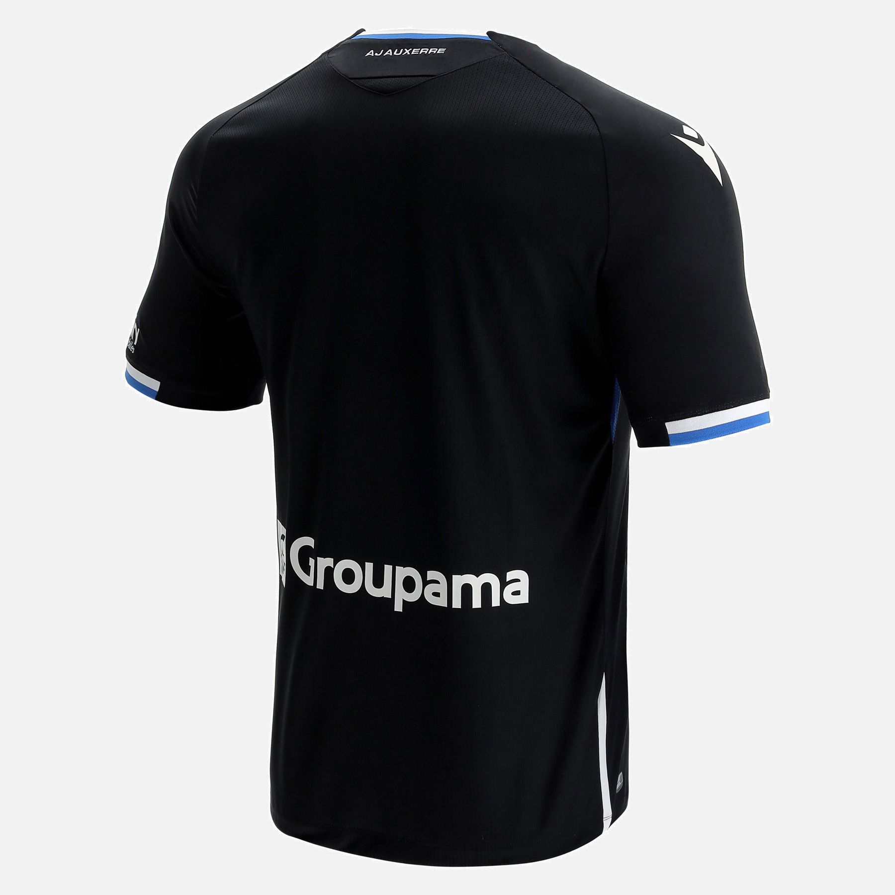 The same colour combination appears on the details of the sleeves edges and in the inner collar. The internal backneck is personalised with the motto: A JAMAIS NOUS SERONS, FIERS D'ETRE AUXERROIS, repeated in both French and Chinese on the silicon tape of the shirt bottom. The name A.J.AUXERRE is printed on the back collar.
