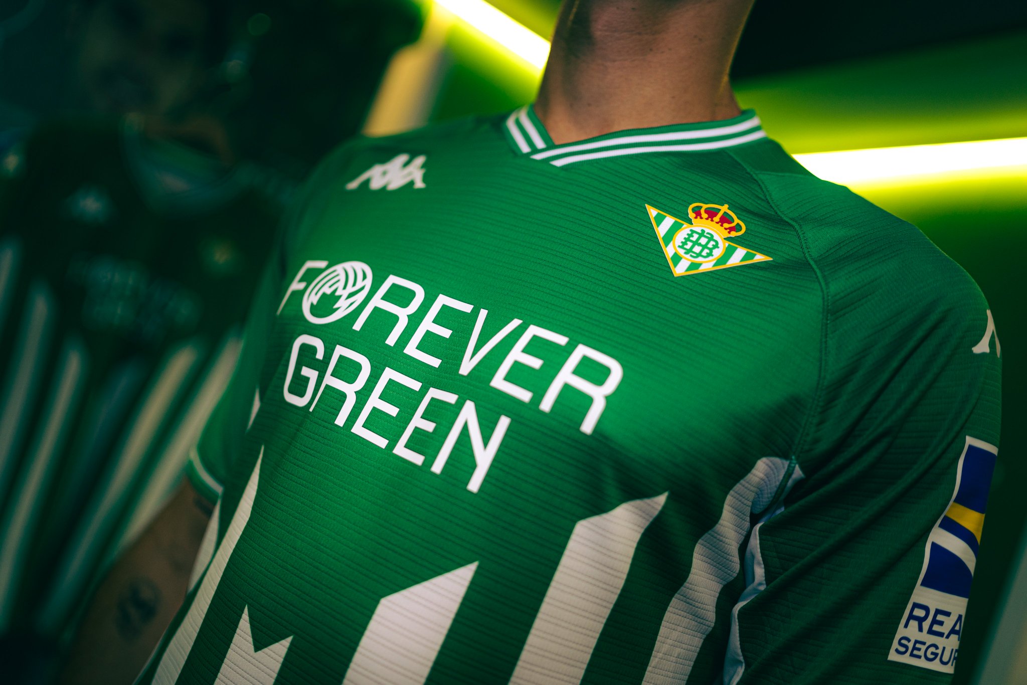 The pre-season “sponsor” of “FOREVER GREEN” is particularly apt and the La Liga side’s kit is finished off with white shorts and green and white hooped socks - complete with overlaid monogram in black.