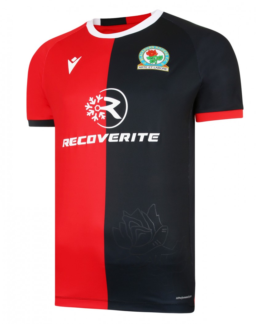 The backneck is personalised with the renowned Rovers crest and the club's motivational Arte et Labore motto, whilst an elegant Lancashire rose also enriches the shirt on the lower front black band.