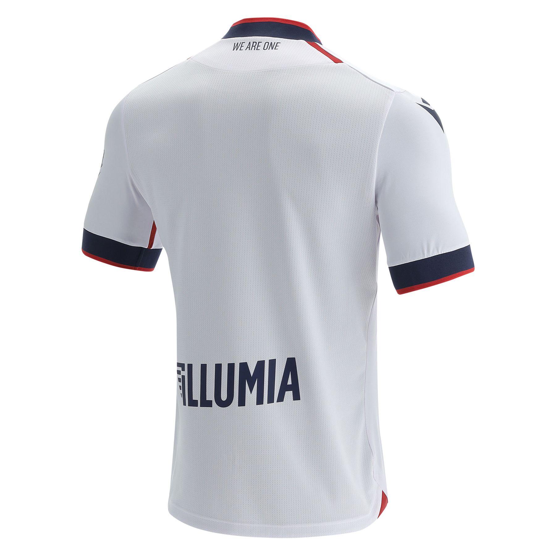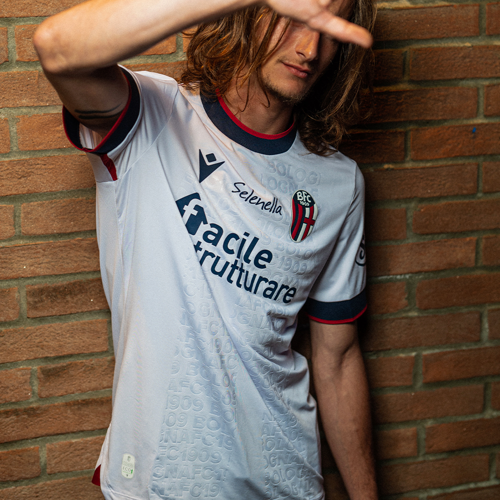 Like the Home kit, the back neck is personalised with the words “WE ARE ONE”. In this case, the city's symbols are referenced by the lettering BOLOGNA FC 1909 embossed and repeated to form the stylised profile of the Two Towers.