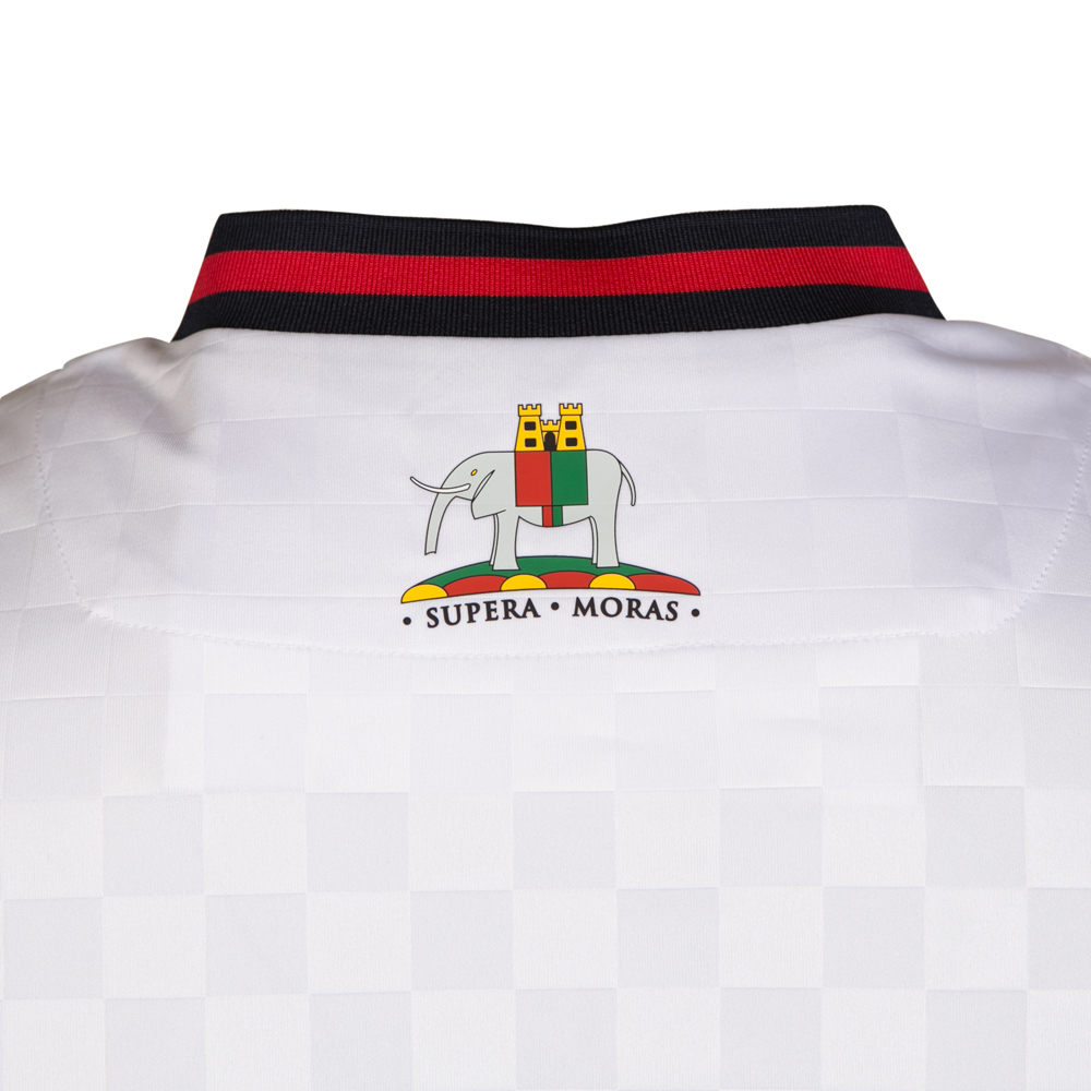 the chest, including branding from official shirt sponsor, Home Bargains, while the back of the shirt features the Lancashire rose embossed at the bottom with the town’s emblem of an elephant and castle printed at the nape of the neck.