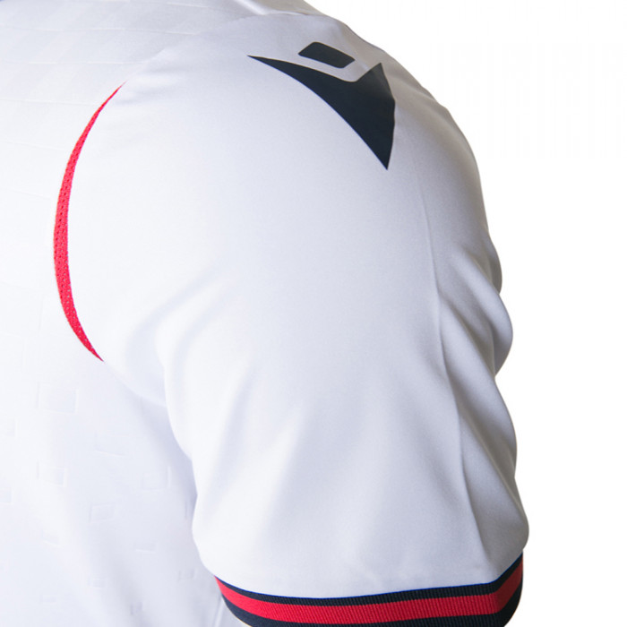 The kit, manufactured by technical sponsor Macron, features the club’s traditional colours of a white shirt and navy shorts, and is made using the M-Performance System fabric for increased comfort, breathability and moisture absorption.