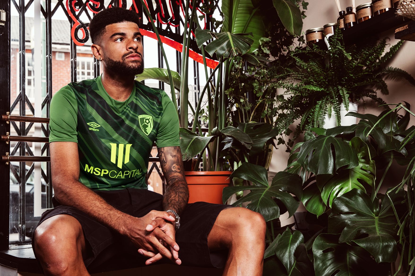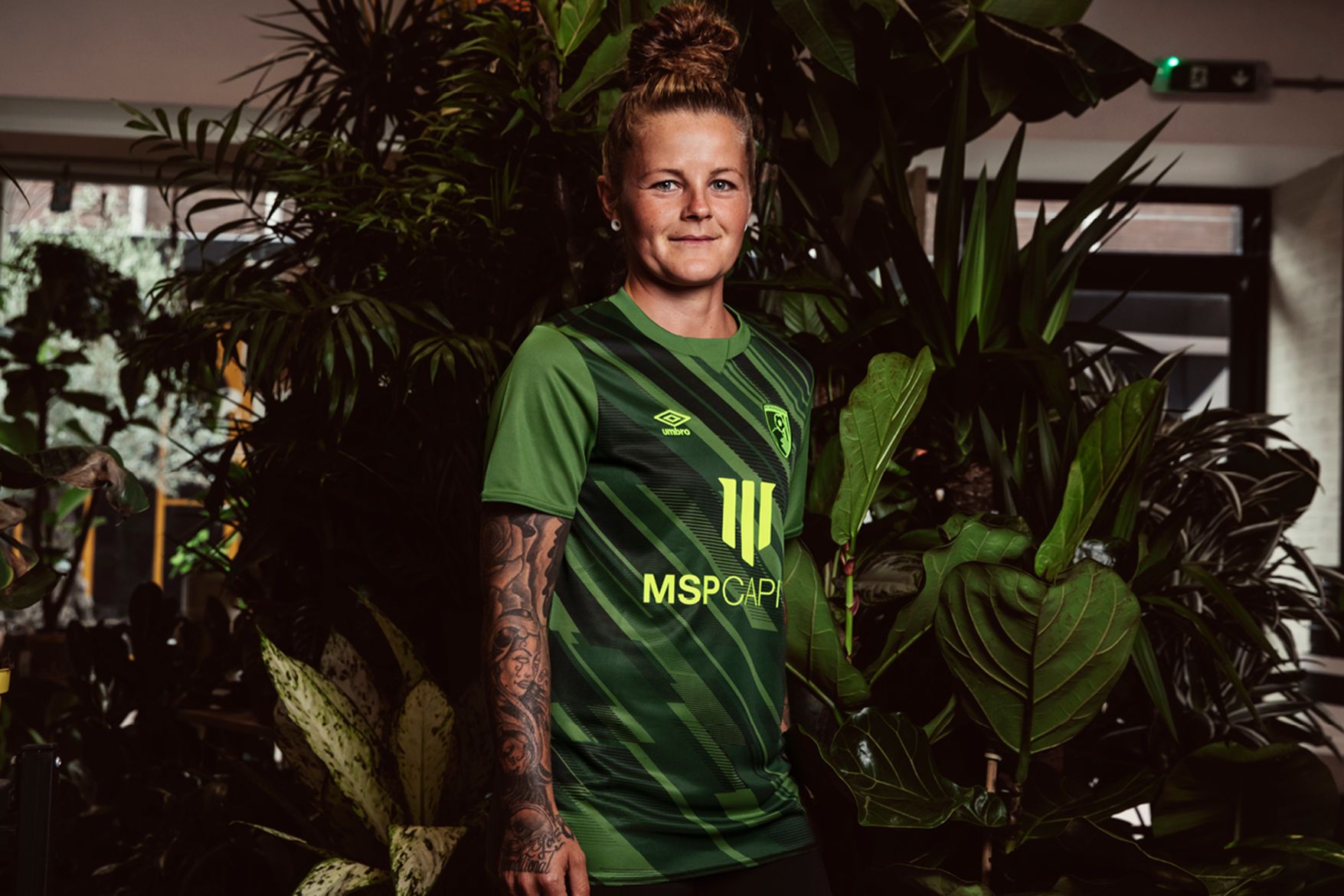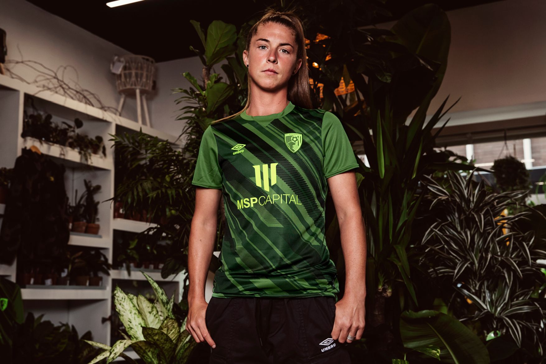 The Umbro kit pairs digital with nature in a cactus green jersey with a contrast printed front graphic which evokes a striking on-pitch visual.
