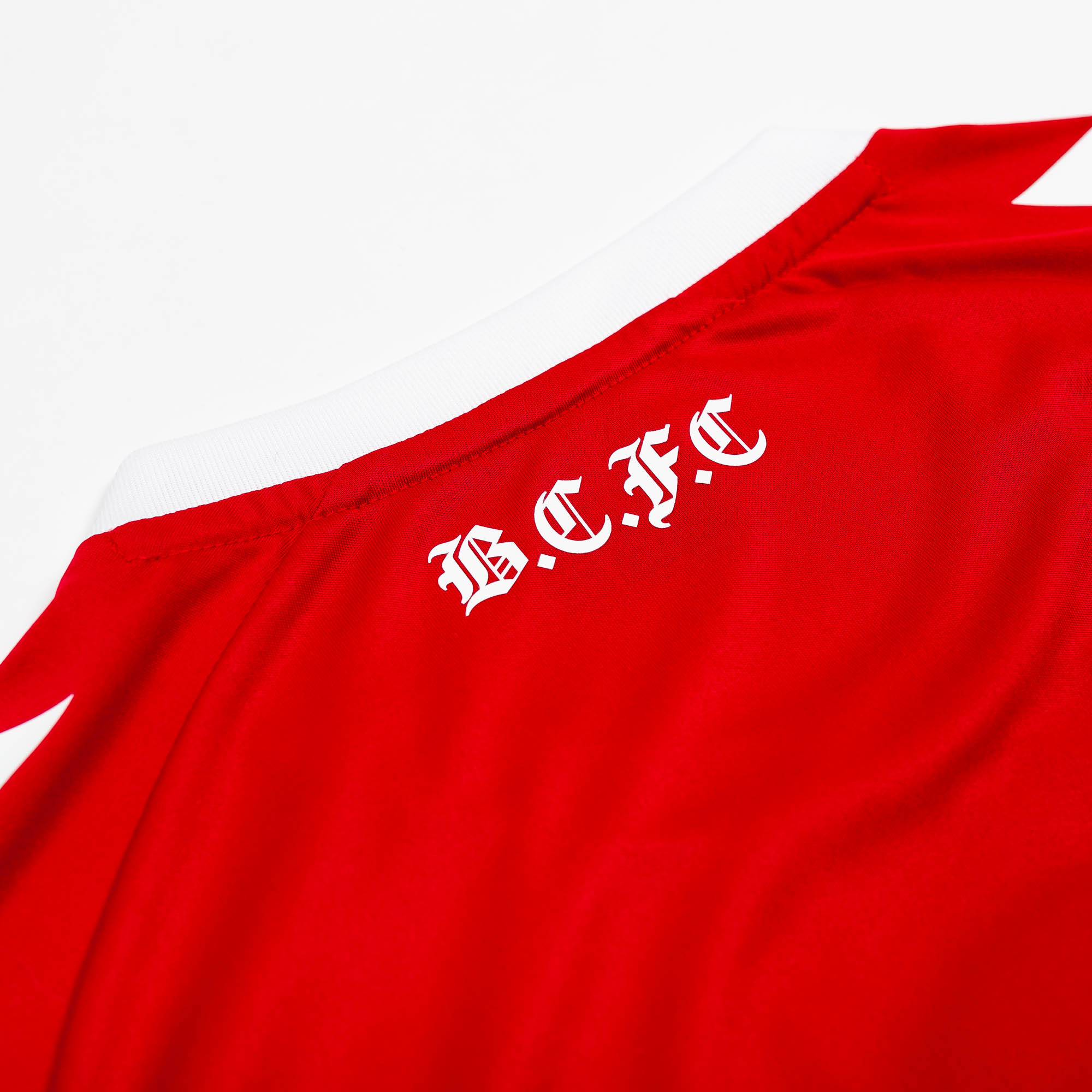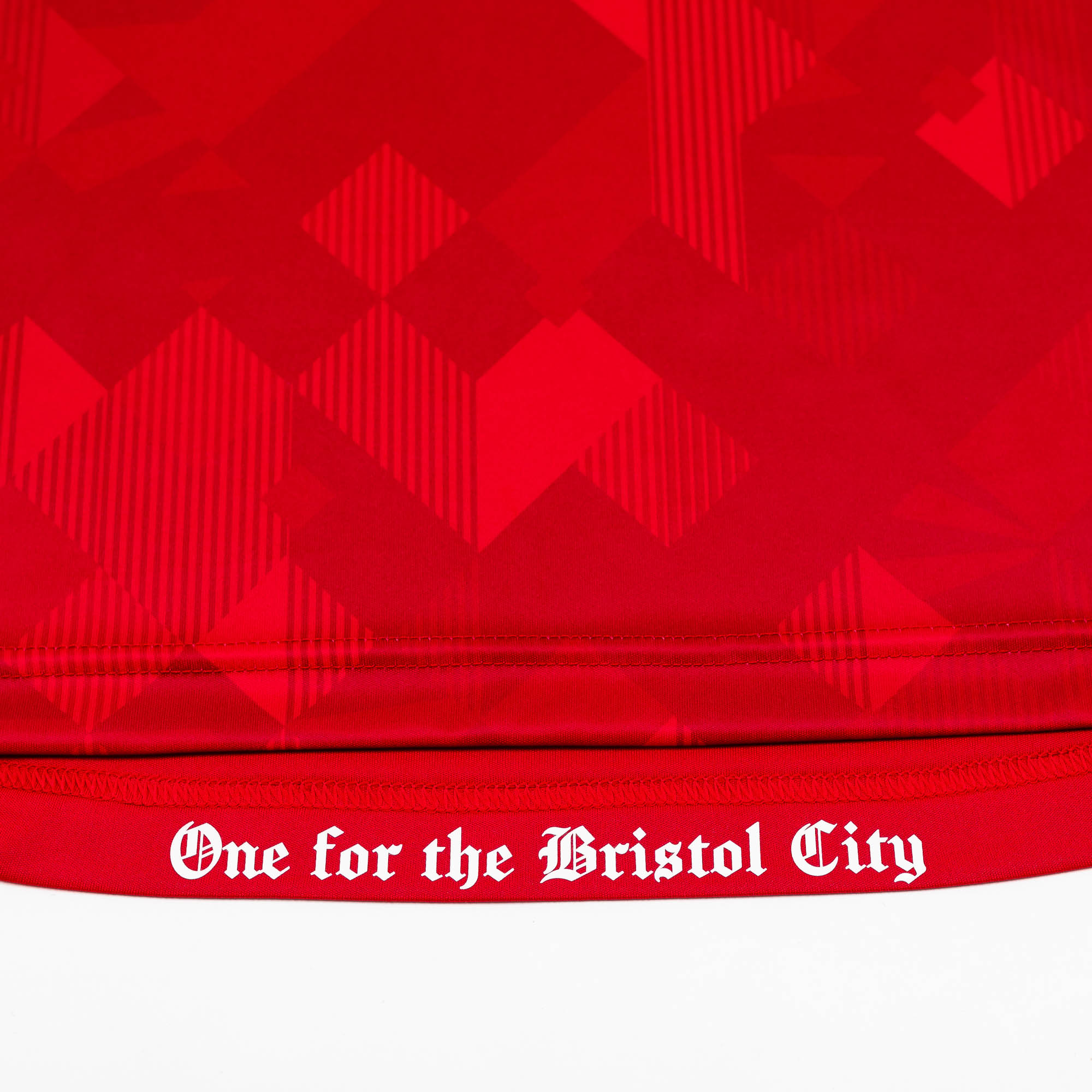 ‘One for the Bristol City’ is printed on the inner back hem and B.C.F.C. features on the back of the neck – both of which are a nod to when the club crest previously appeared centrally on a playing shirt.