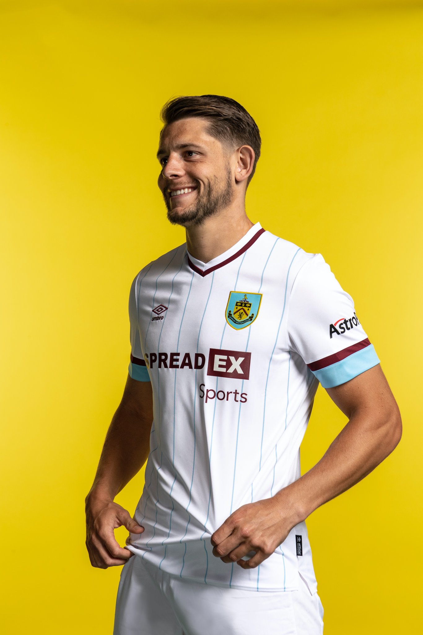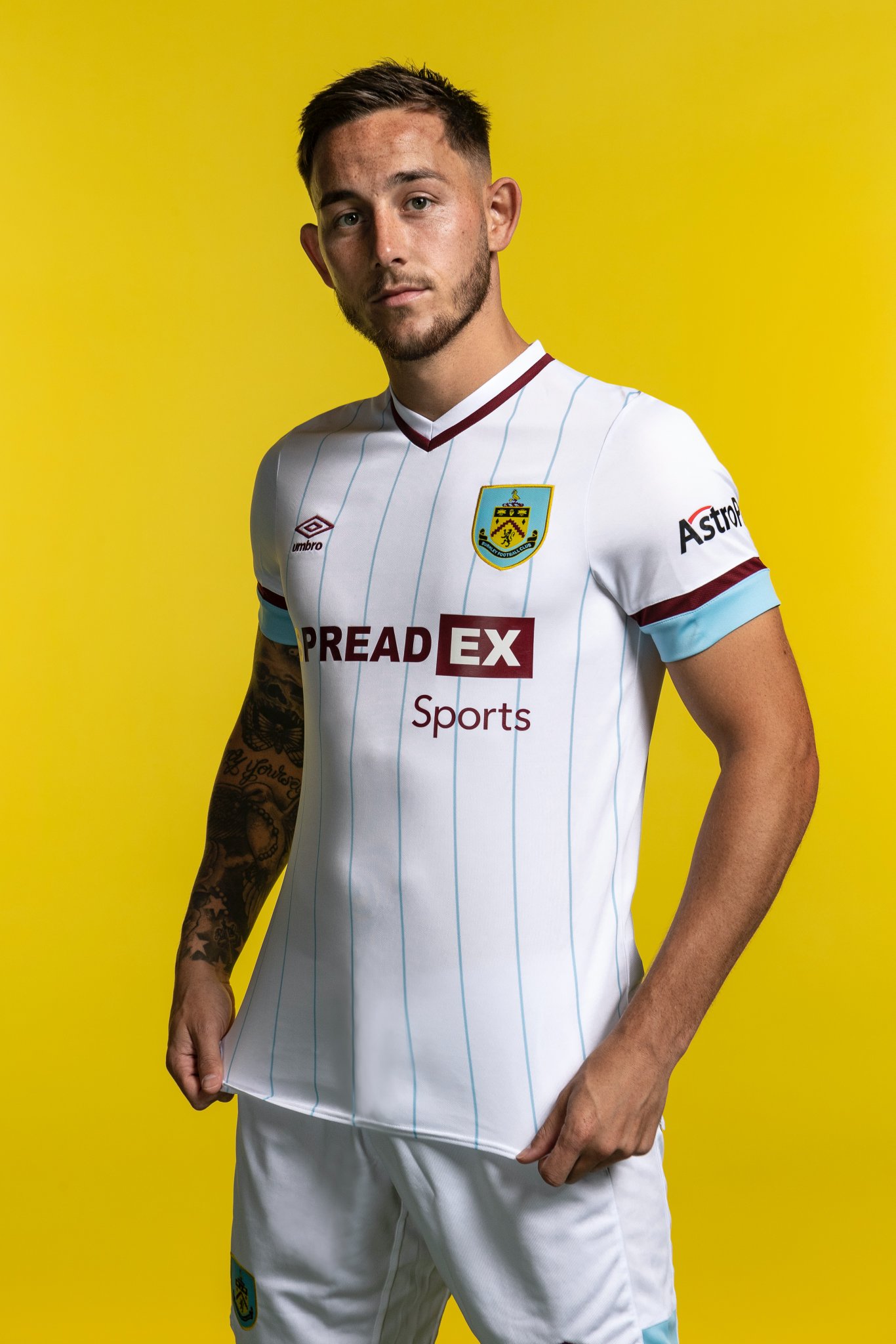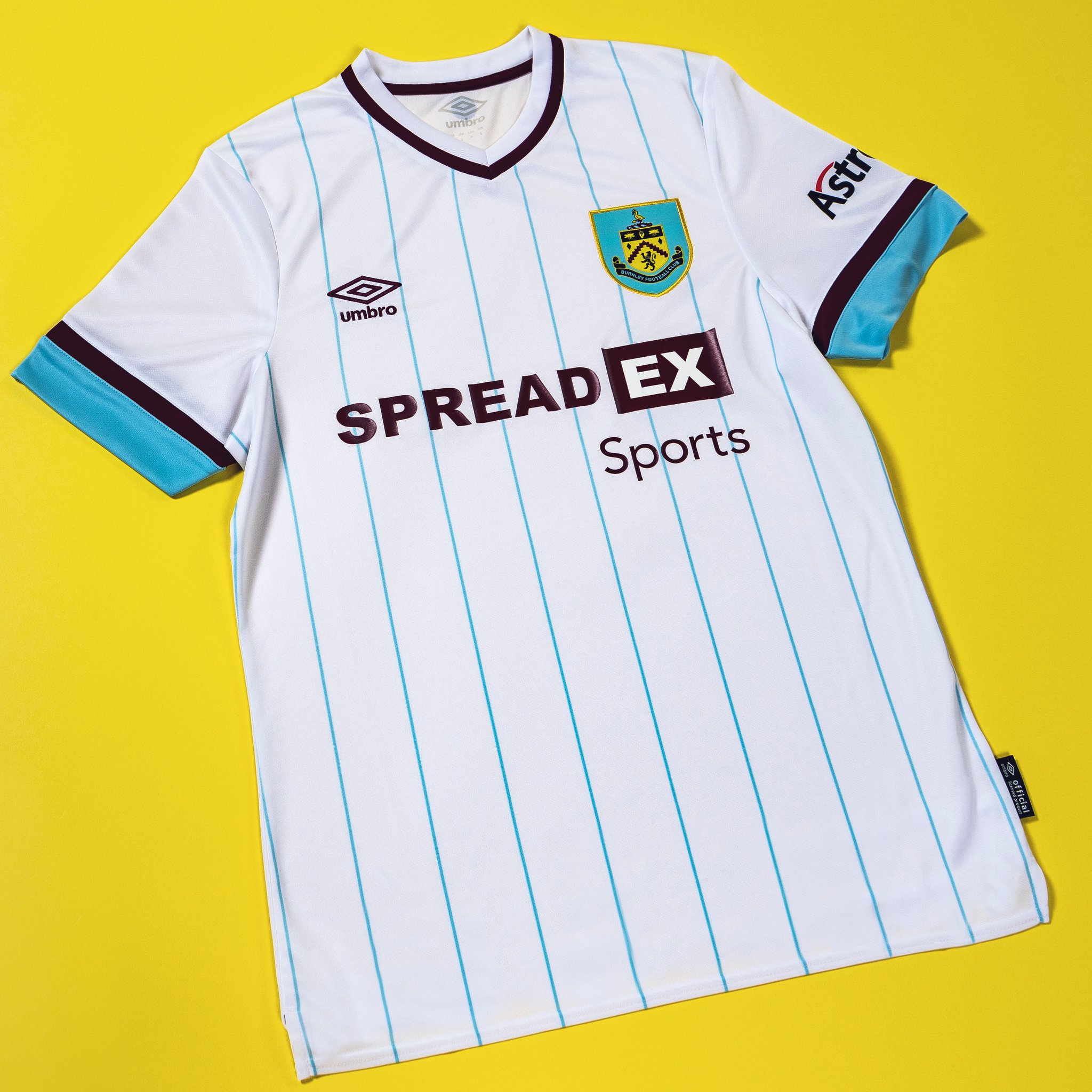Designed by Umbro and emblazoned with club partner logos from SpreadEx and Astropay, the new shirt embraces lifestyle aesthetic by way of printed sky blue pinstripes to the front of the body.