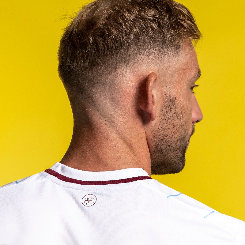 Ths kit also features a stylised V neckline with claret insert, contrast cuff detail, full colour woven applique club crest, embroidered diamond, bespoke back neck sign off, micro eyelet back panel to wick away sweat, dropped hem with side vent detail and official licensed label at the side seam.