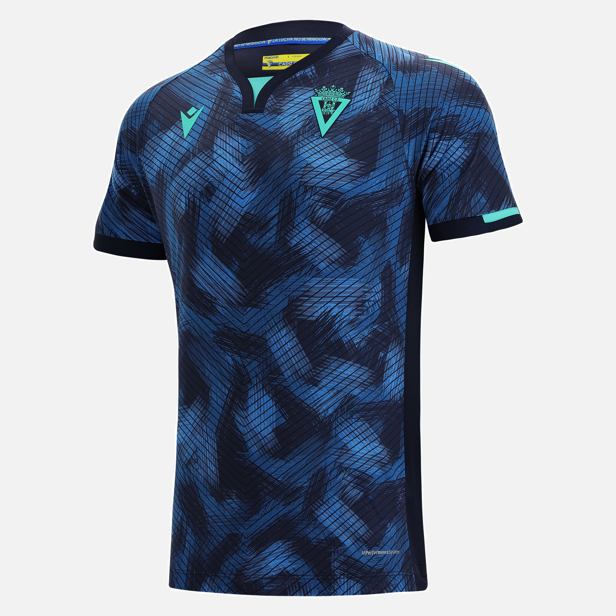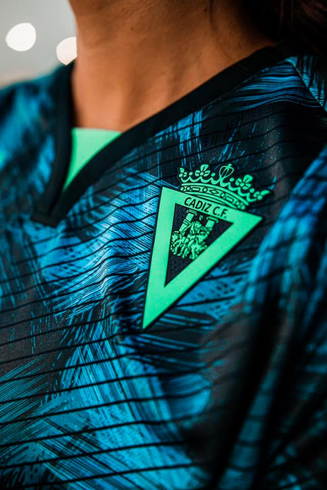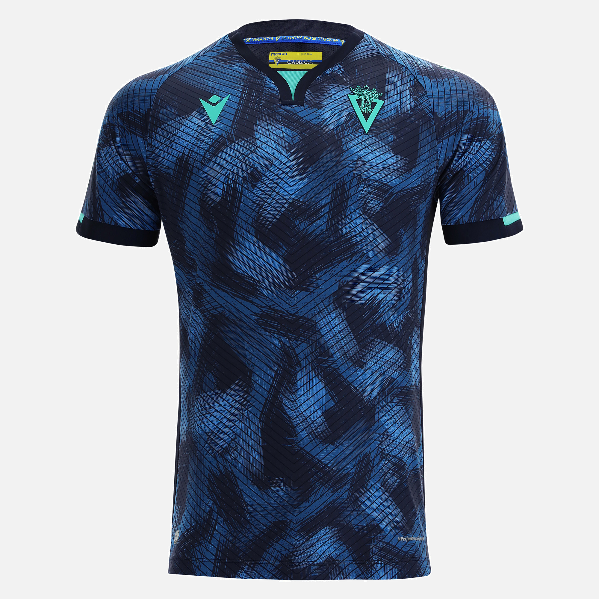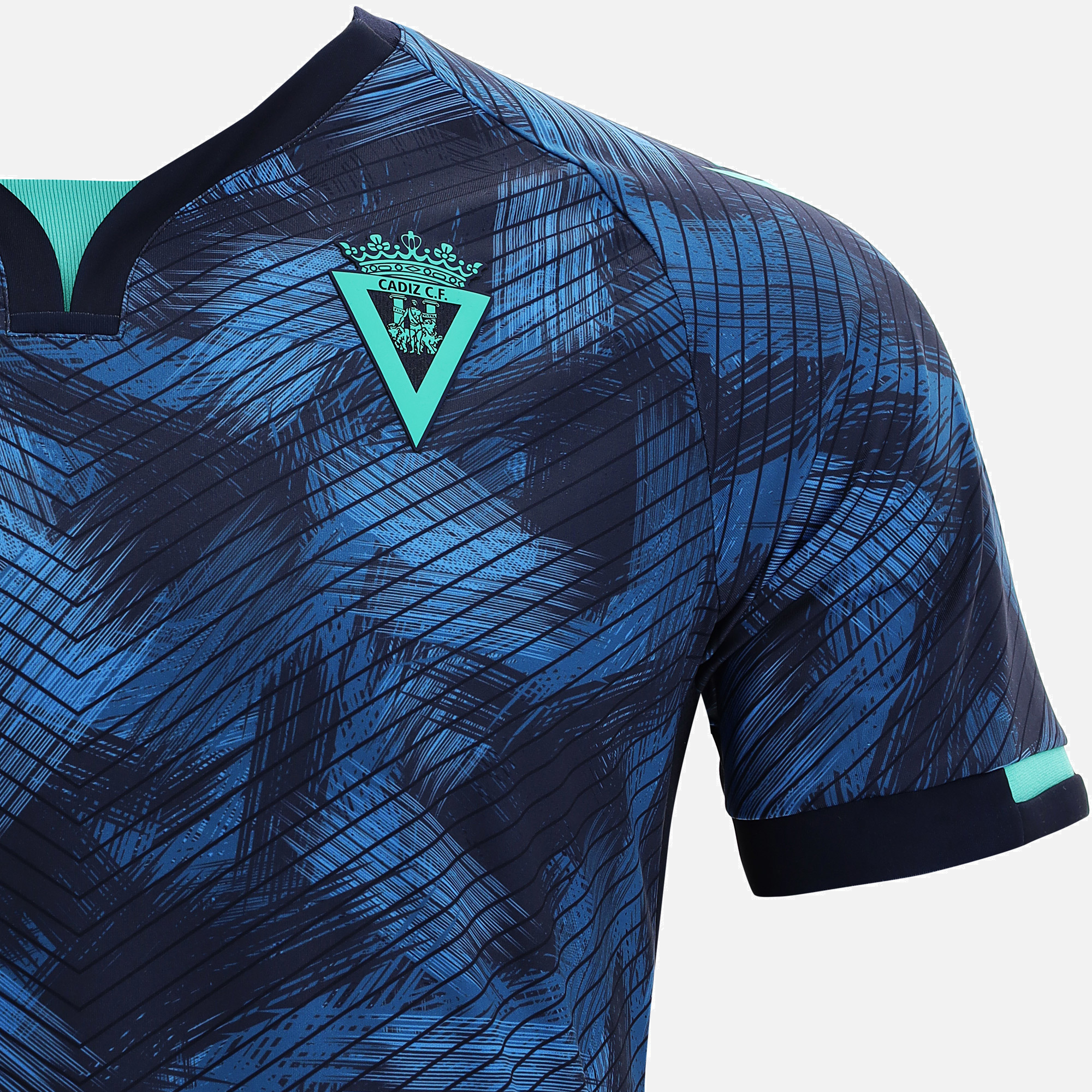 The new Cadiz CF 2021/22 away shirt features dye-sublimation graphics with random strokes of navy blue and turquoise for a playful look.