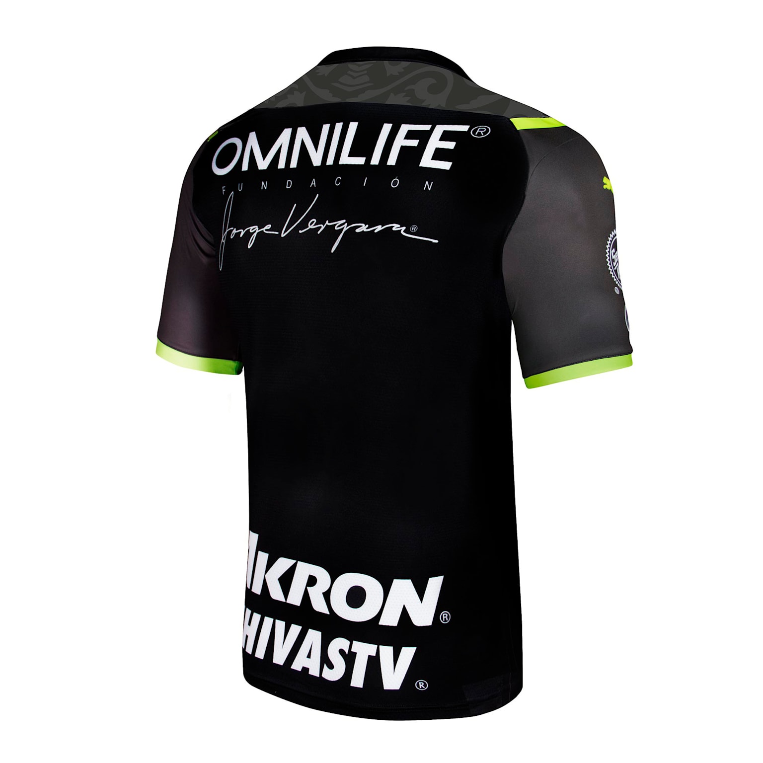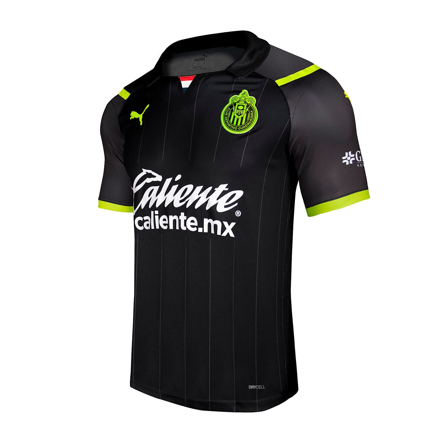 Chivas’ 2021-22 secondary design is in black and grey with contrast provided by both a fluo lime green tone and white - the latter by way of the partner logos other than Puma’s cats.