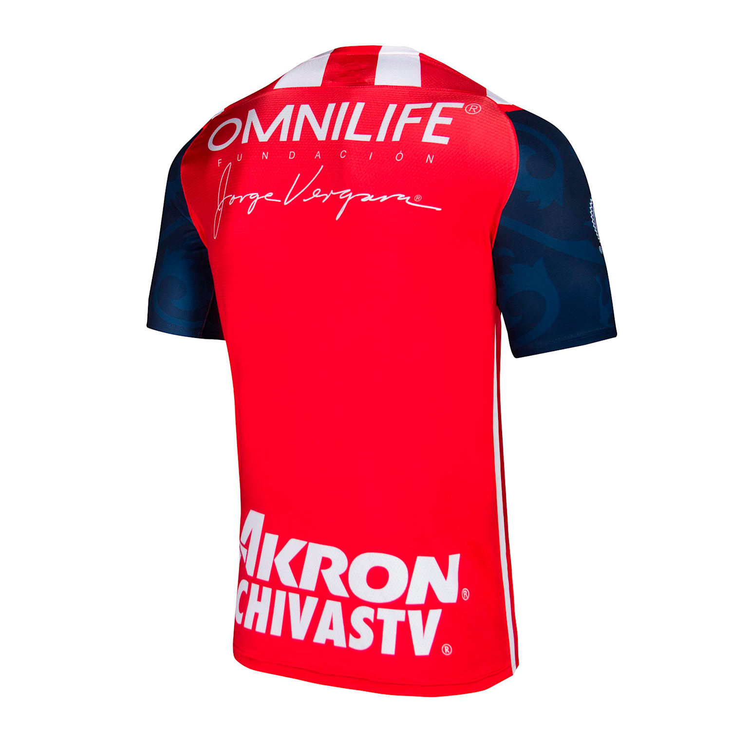 The 2021-22 Puma design for the Liga MX side features red and white stripes and stylised navy sleeves with crest detailing sublimated into the fabric.