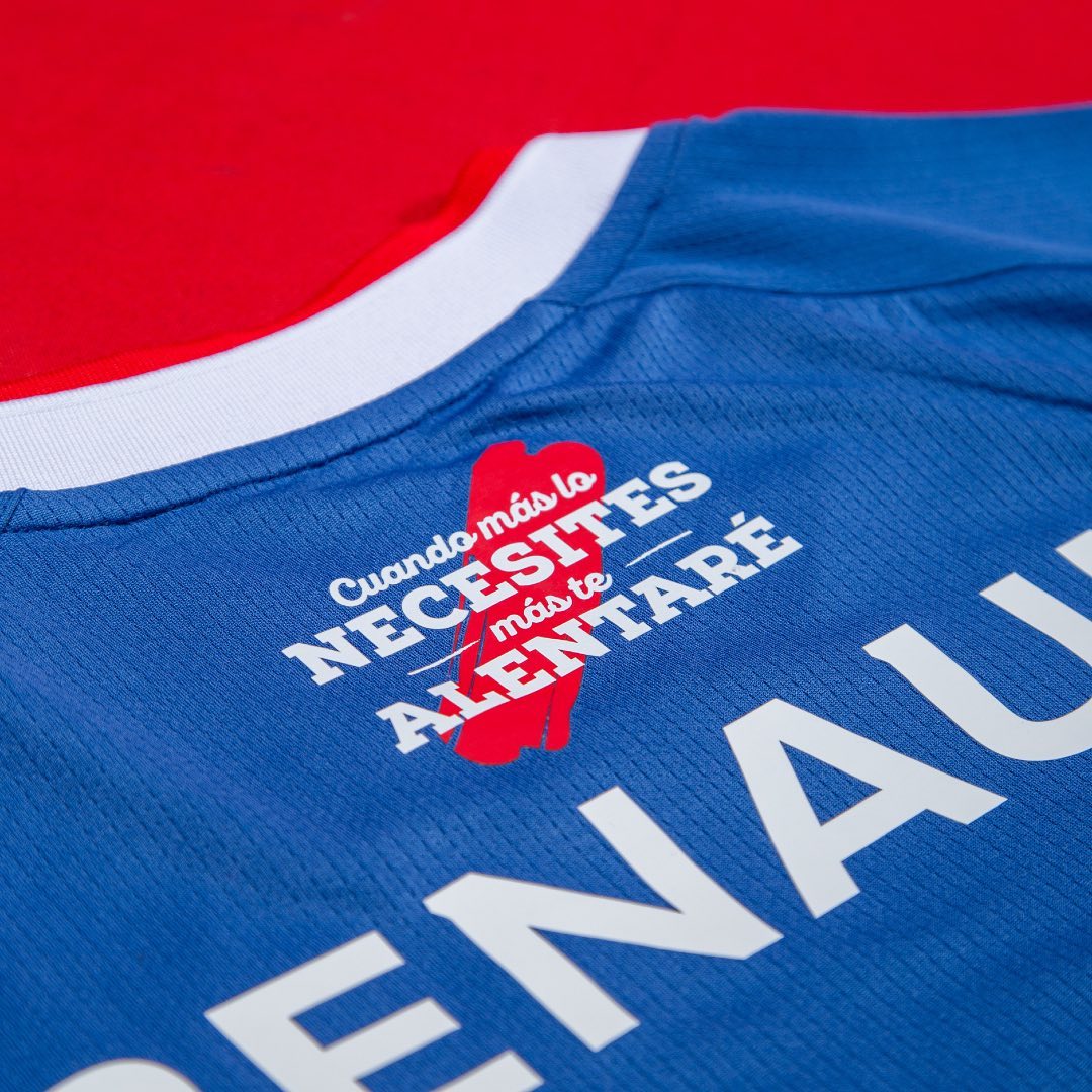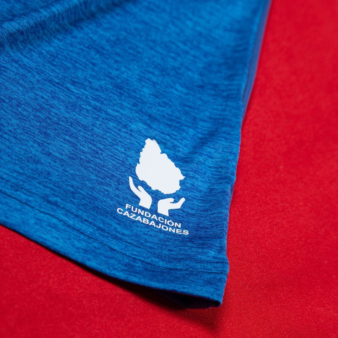 The marl-textured blue design - effectively the third shirt for 2021-22 - features white and red trim, partner branding in white and has been created in collaboration with the “Fundación Cazabajones” cause.