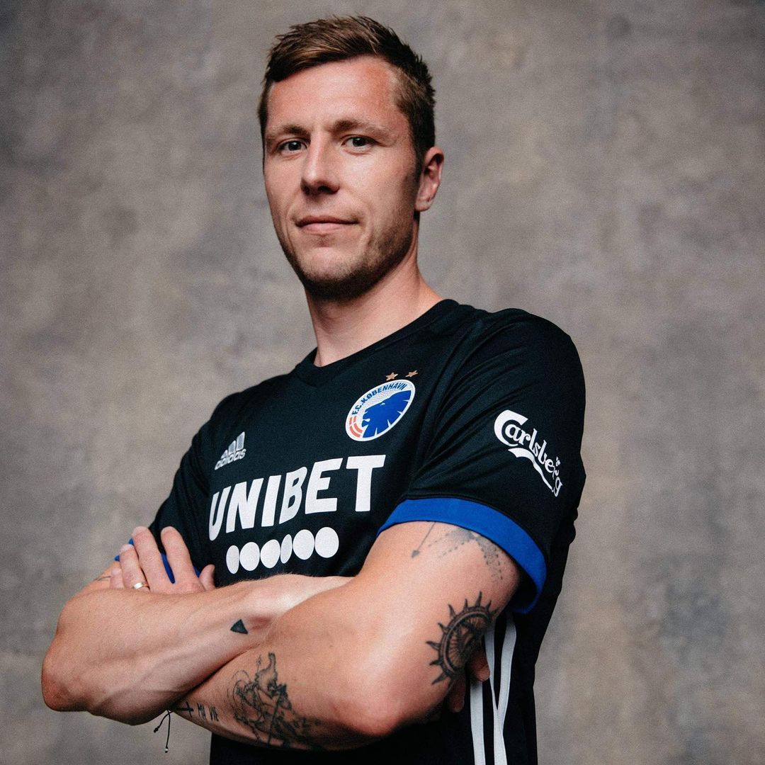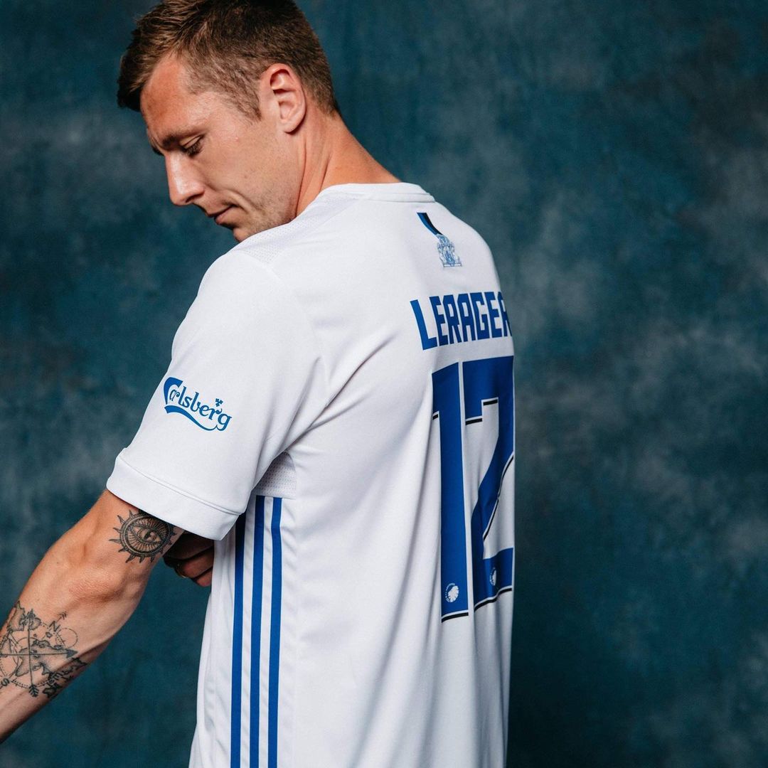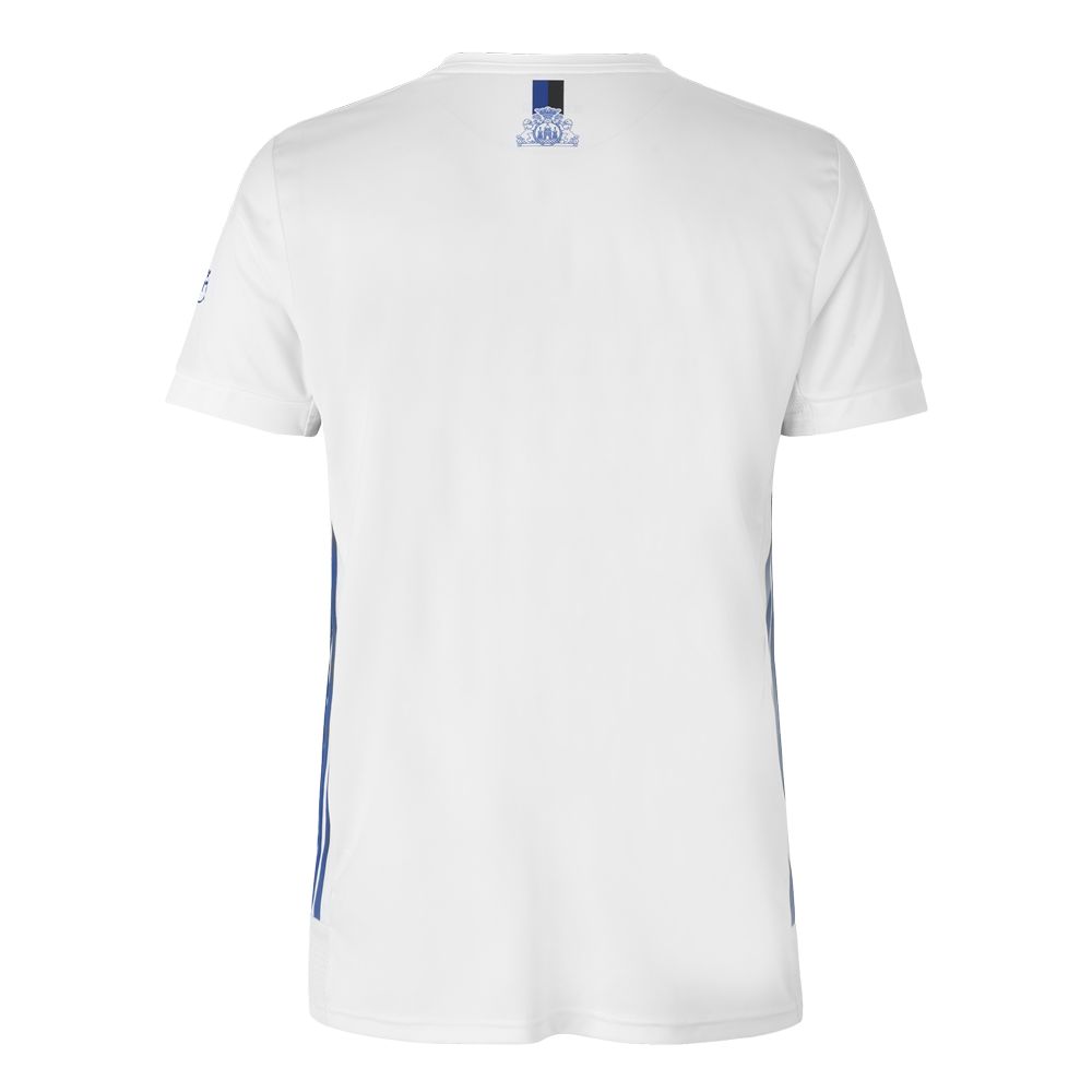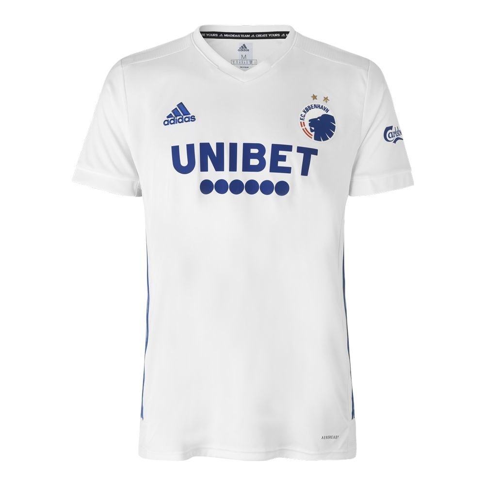 In white embellished with blue - and the recognisable crest in full colour - the shirt is otherwise relatively standard FCK fare, with dual-coloured (black and blue) stripe on the upper back along with the Copenhagen coat of arms.