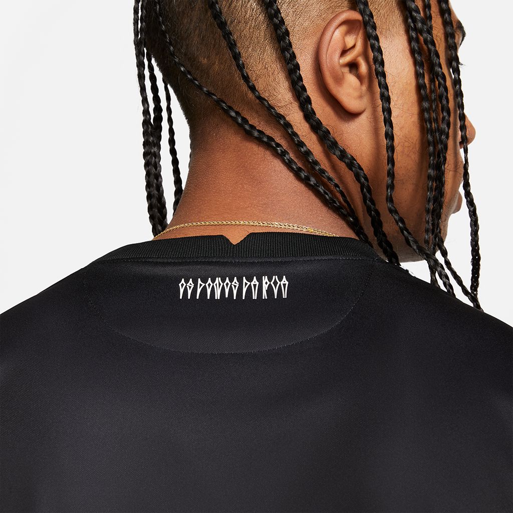 Adding a twist to a classic look, Nike’s black base is embellished with slim white stripes rendered via a spray can effect. This is a nod to local São Paulo graffiti and “the owners of the street” are honoured by “Os Donos da Rua” appearing on the upper back.
