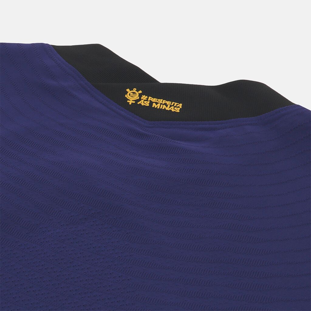The neck, cuffs, side-of-trunk trim and backing for the converted crest are in black, while further embellishment - including said crest and the #RespeitaAsMinas (respect the girls) detail on the back of the neck - appears in gold.