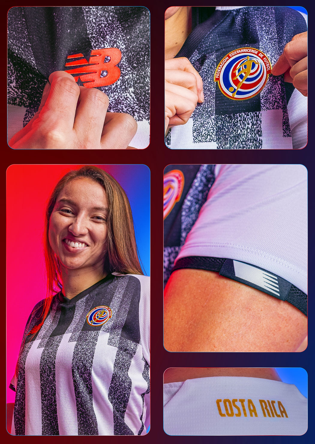 Nodding to the famous striped look Los Ticos sported at Italia ’90, the new design boasts a modern graphical take on a black and white standard.