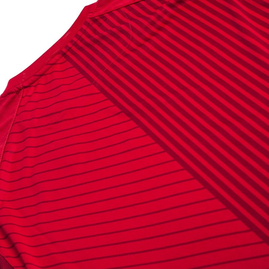 The new secondary change design for the Dansk Boldspil-Union (Danish Football Union) representative side provides something of an alternative to the white Away and the white-heavy Home, with a tonal “red-out” effect.
