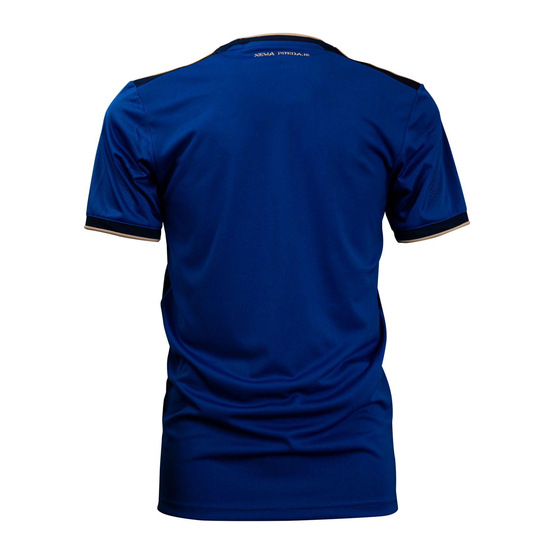 Embellishment is largely in gold - including both the adidas branding and sponsorship logos - but the crest, however, appears in full colour.