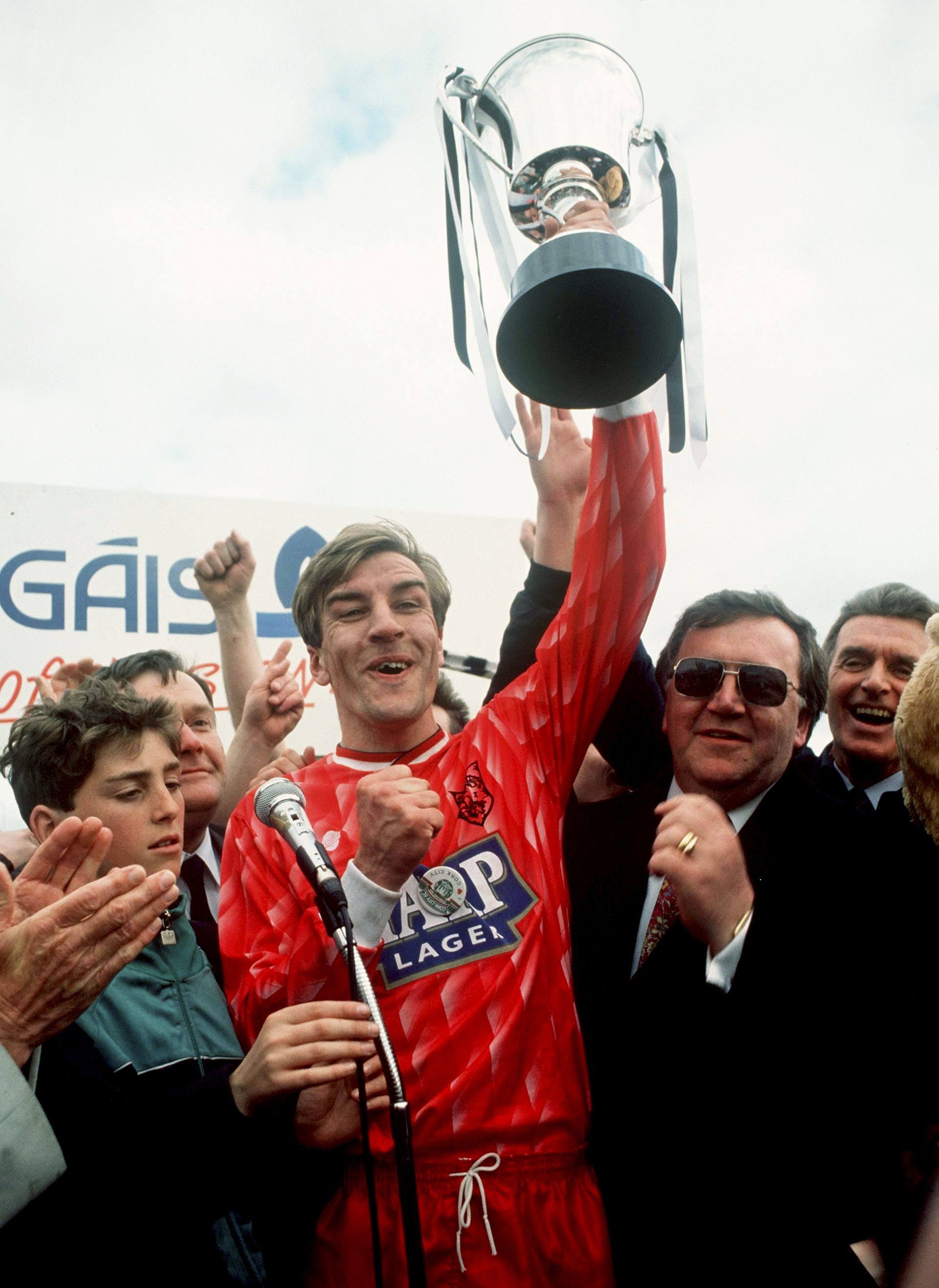 The new shirt is based on the iconic all-red strip worn by Turlough O’Connor’s men on the final day of the 1990/91 season when Tom McNulty’s goal secured Dundalk a 1-0 win over Cork City to clinch the league title at Turner’s Cross.