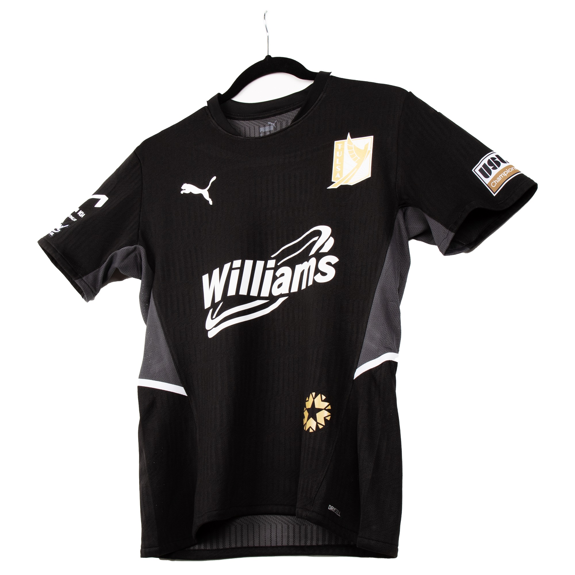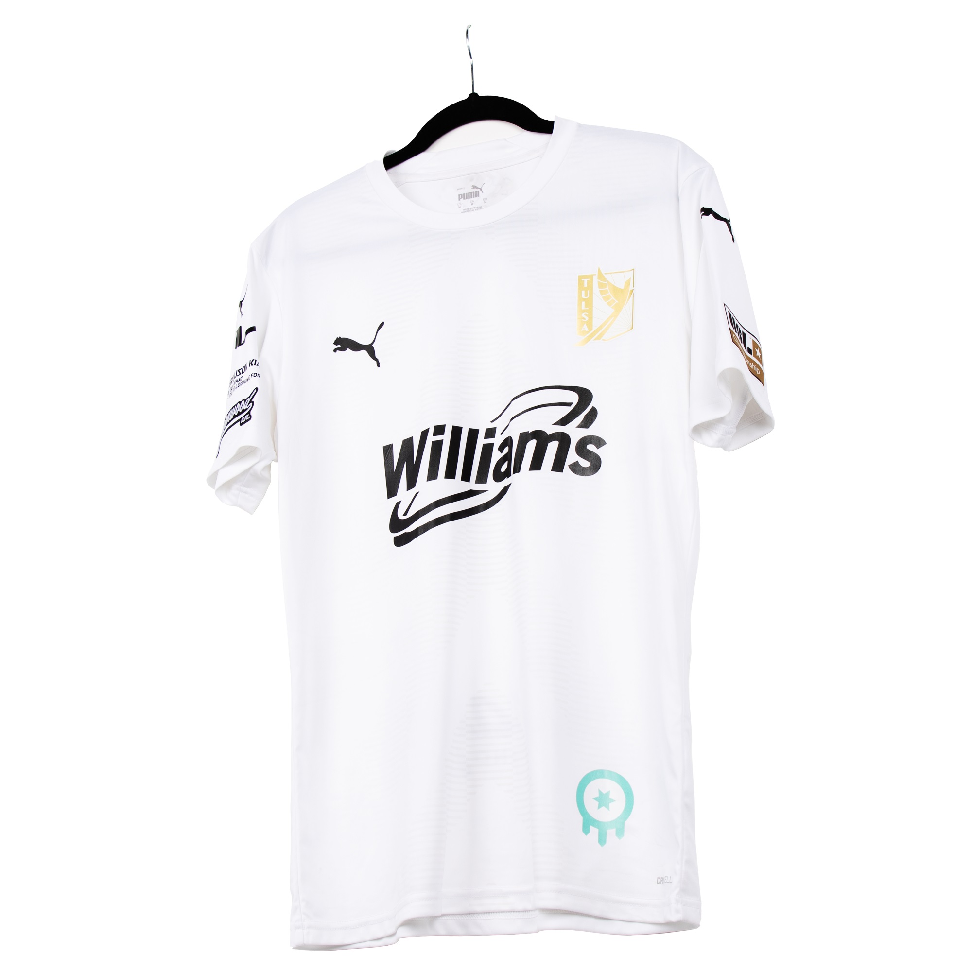 The “City” shirt carries most embellishment in grey - including the main sponsor logo and Puma cat logos - while the “jock tag” is the emblem that features on the Tulsa flag and is in “Patina Green”.