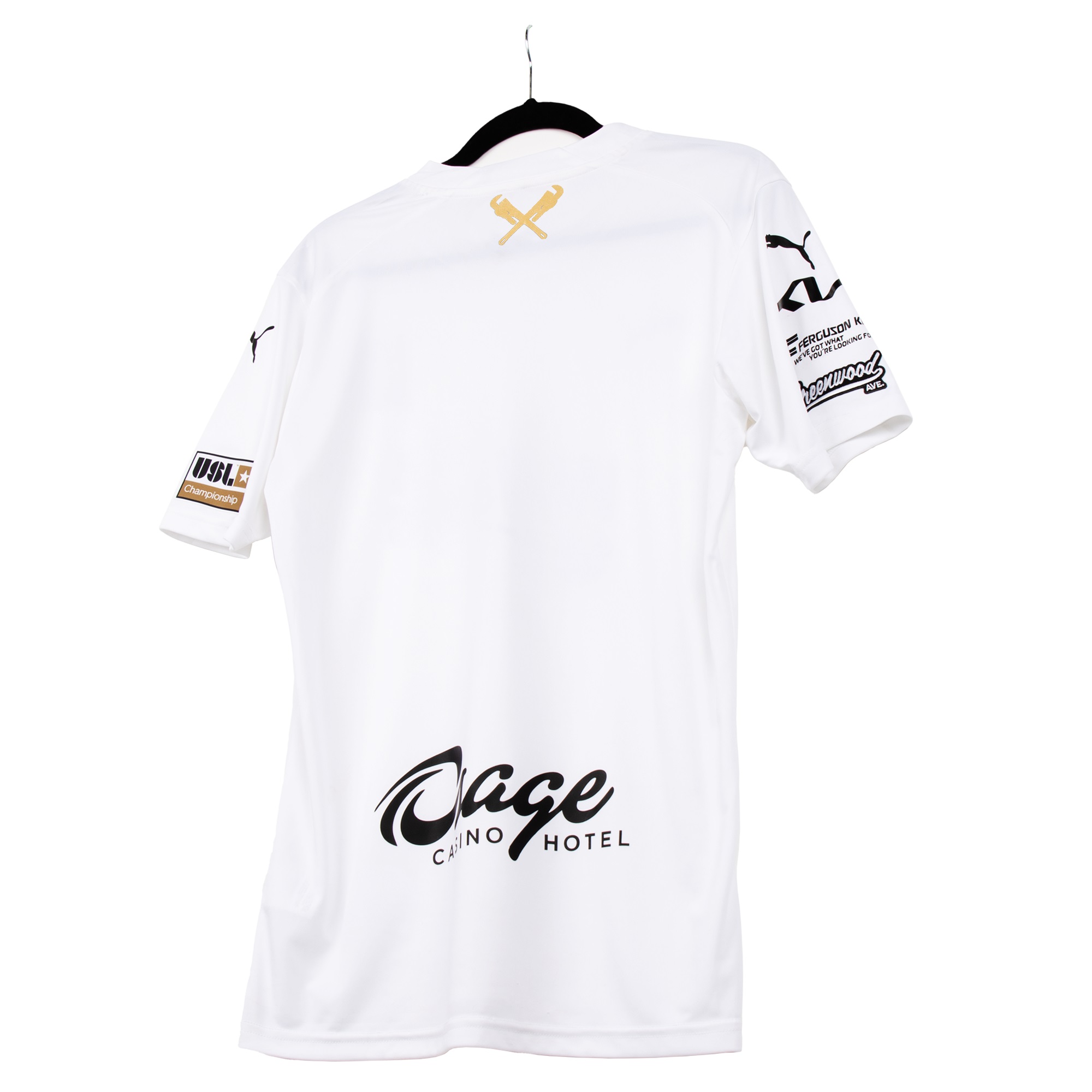 Similarly, the “State” shirt has, as well as contrast detailing in white, an Oklahoma state logo in gold, matching the crests and crossed wrenches on both shirts - the lattermost representing Black Gold Derby victories over OKC Energy FC.