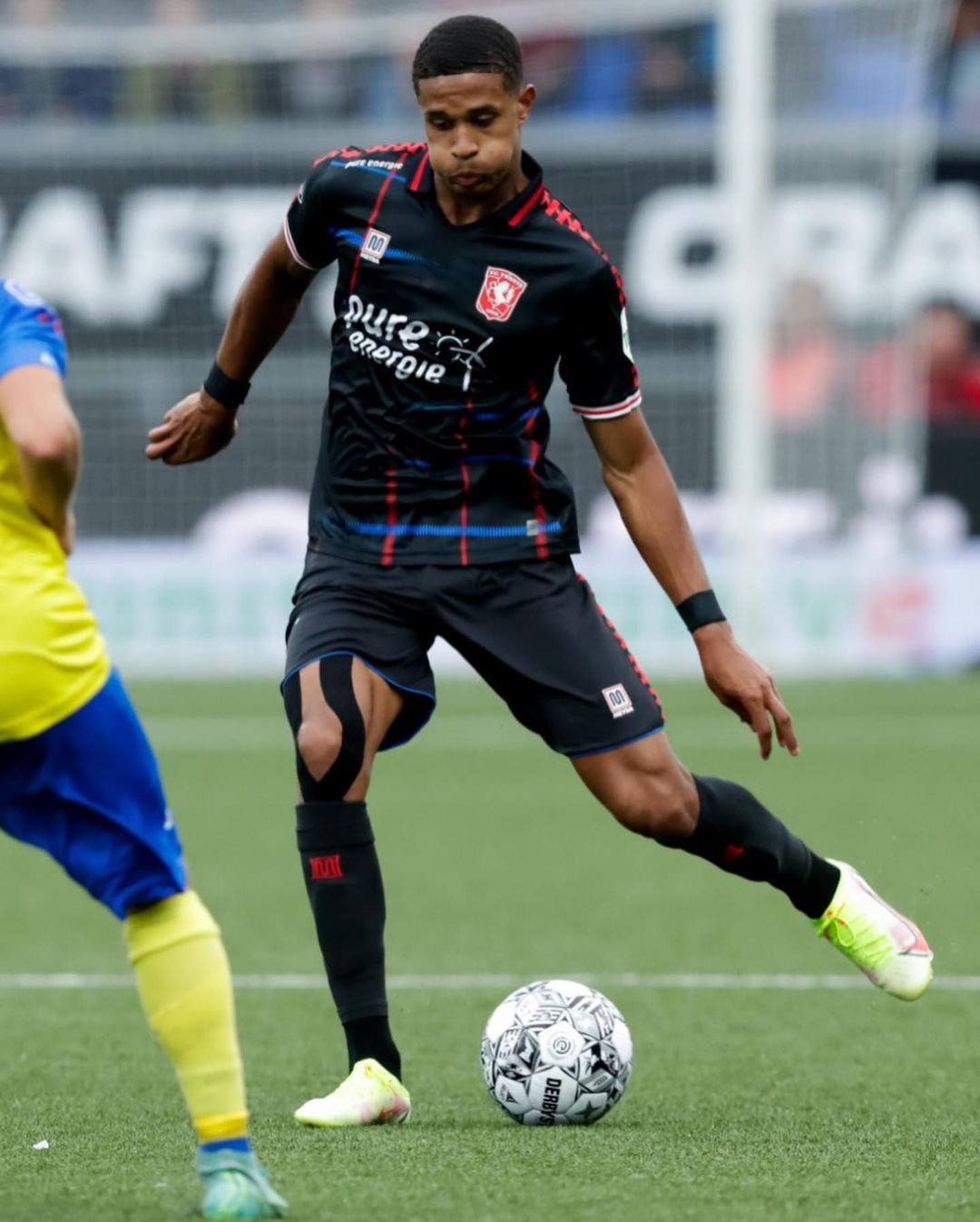 Twente’s home city of Enschede is honoured in the coat of arms on the upper back, the skyline on the lower back and the cuffs resembling the city flag, decorating a 2021-22 kit completed with matching black shorts and socks.