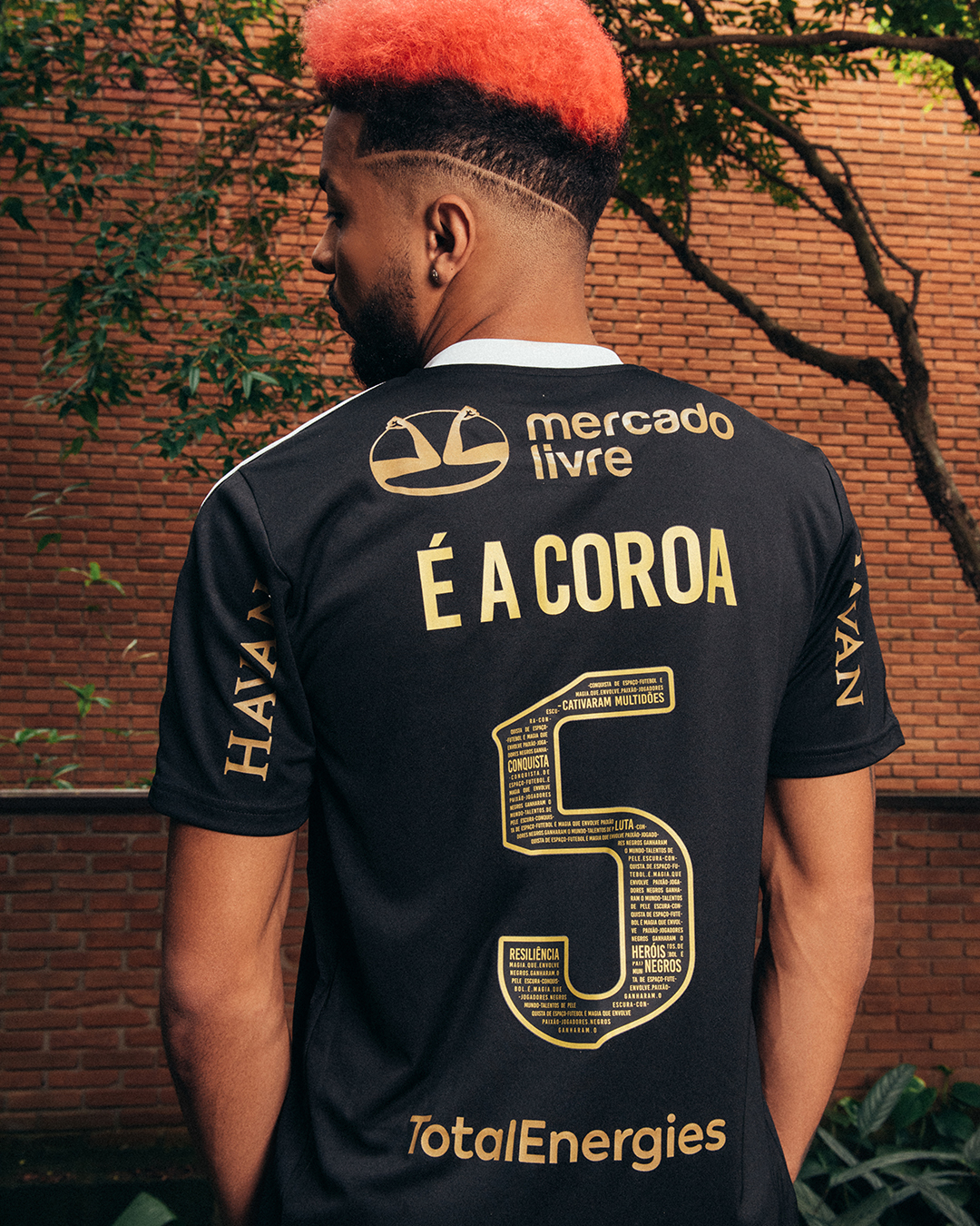 Released as part of the “Consciência Negra” (black consciousness) initiative, the largely monochrome design has detailing which celebrates the black community’s influence on football and society.