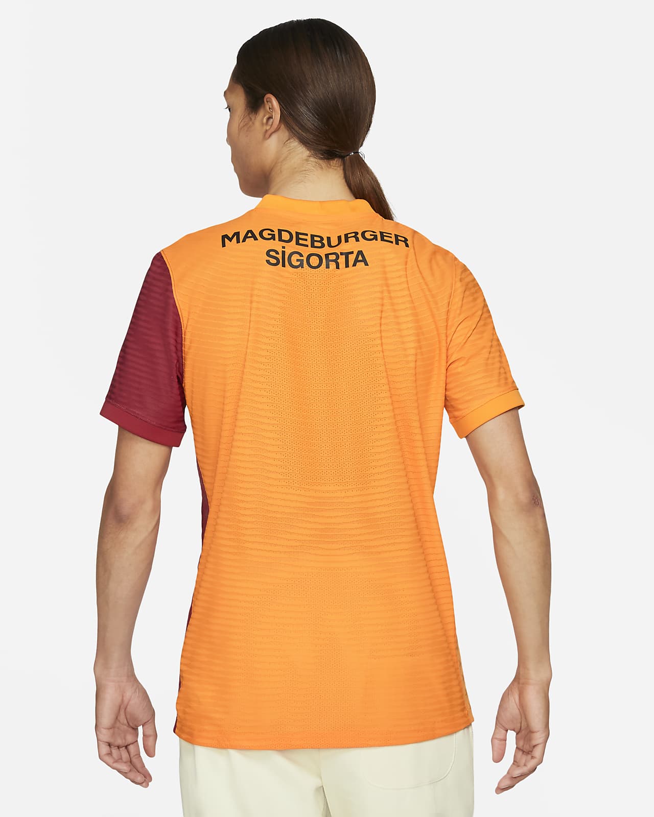 The 2021-22 Nike design consists of the famous yellow and red - Vivid Orange and Pepper Red, in reality - proportioned as halves with a diagonal split in the style of AS Monaco.