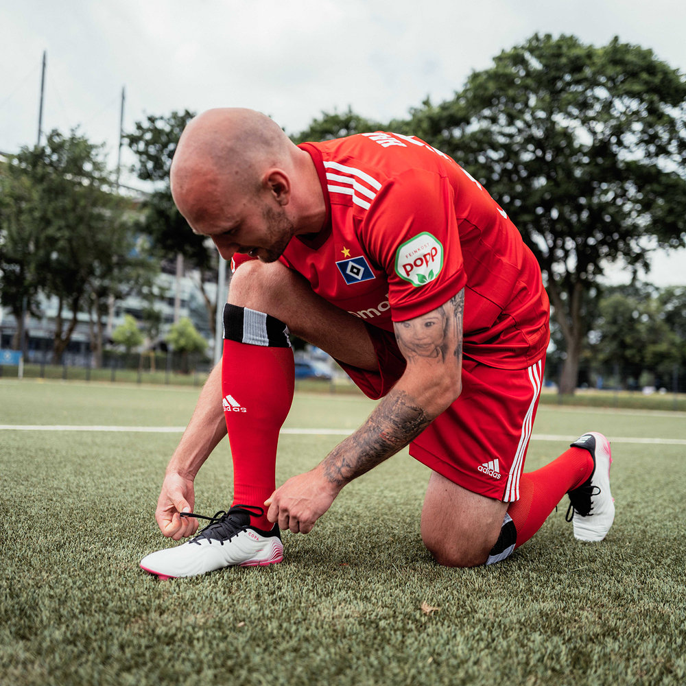 The “Primegreen” (adidas’s sustainability drive) release is combined with red shorts and socks to complete the kit - the latter with HSV’s iconic turnovers.