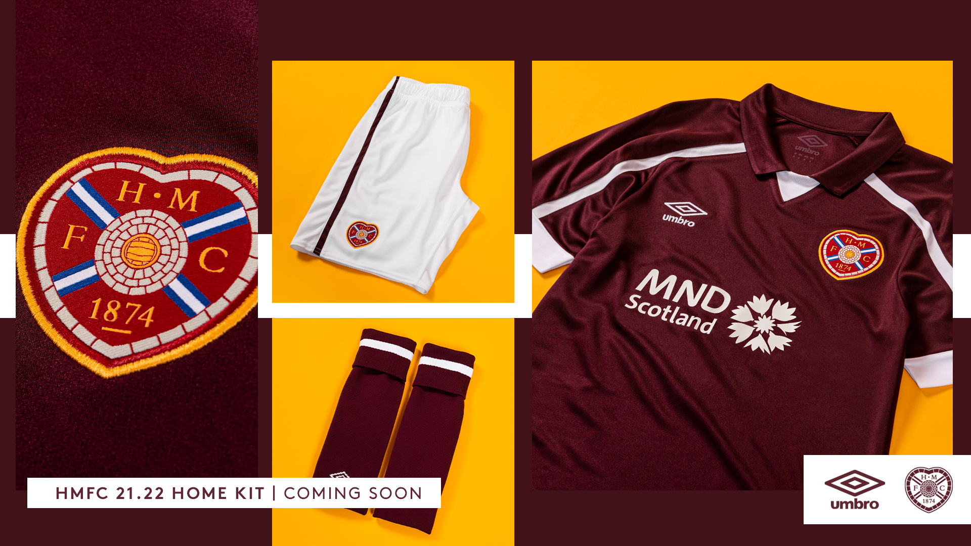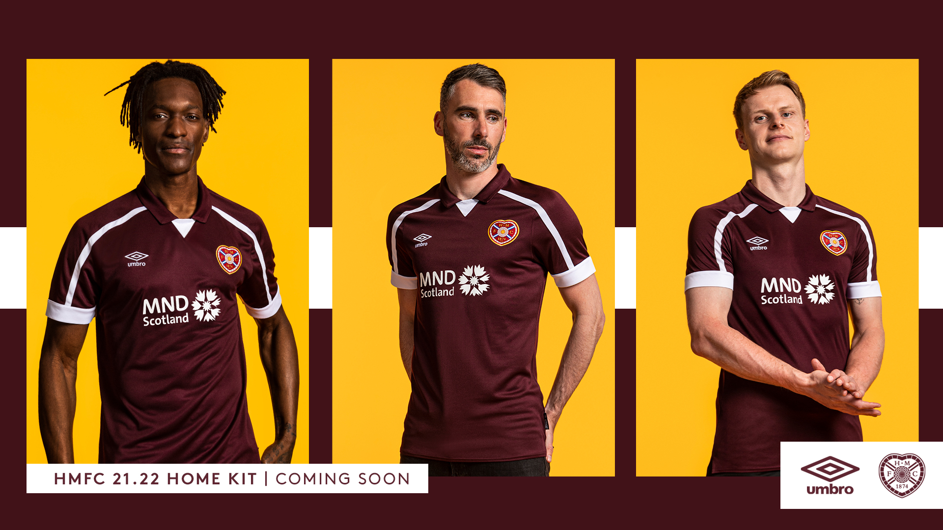 Heart of Midlothian revealed their new Umbro home kit for the 2021/22 season, with MND Scotland taking pride of place on the front of the jersey.