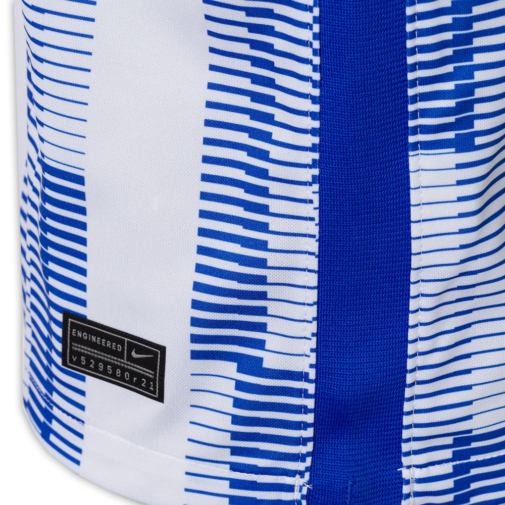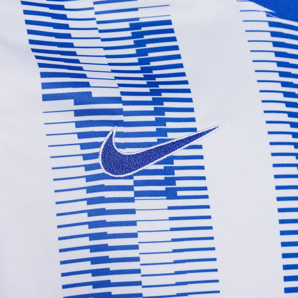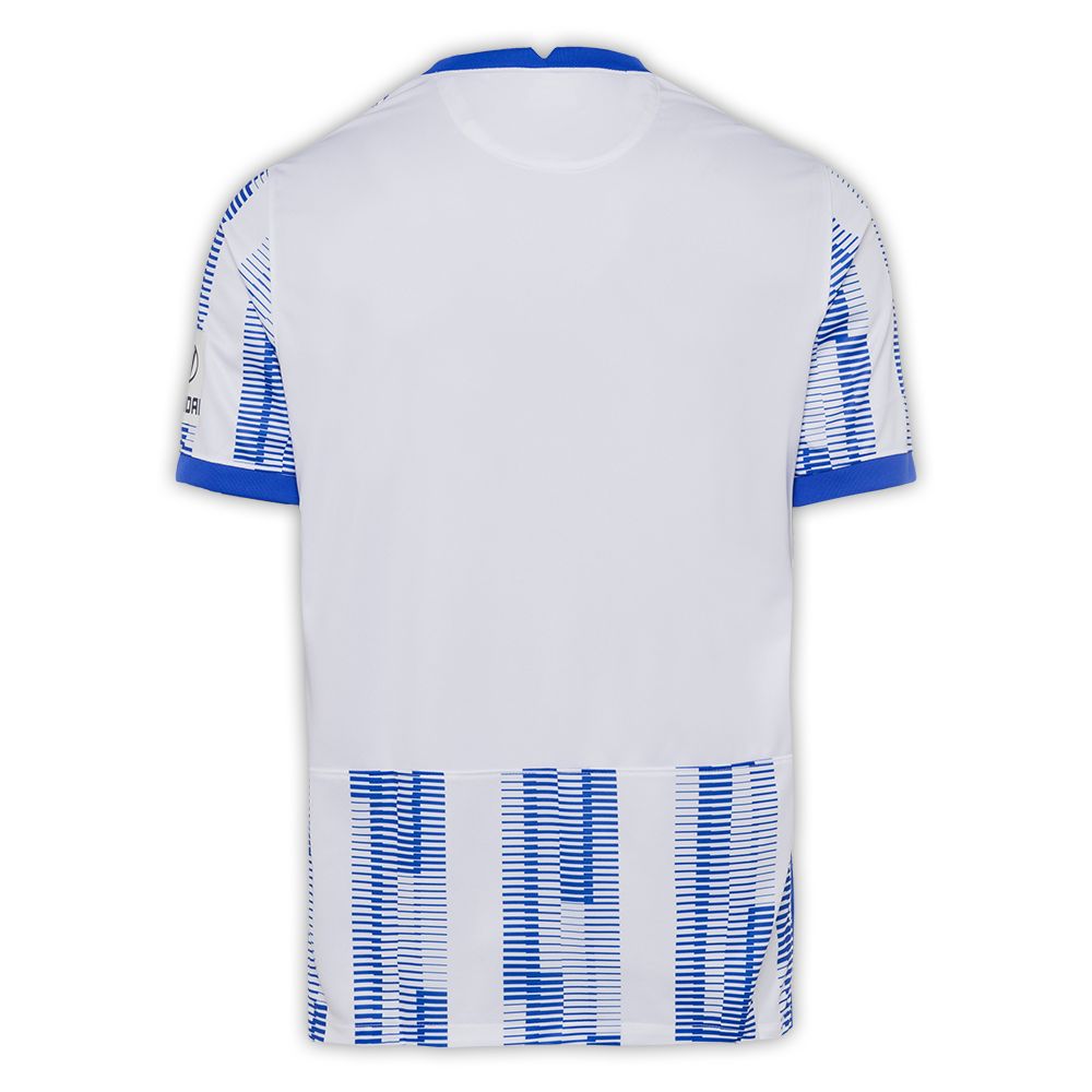 The new Herthaner home shirt is predominantly white and combines the classic, blue vertical stripes with a dynamic and modern look for the upcoming season.
