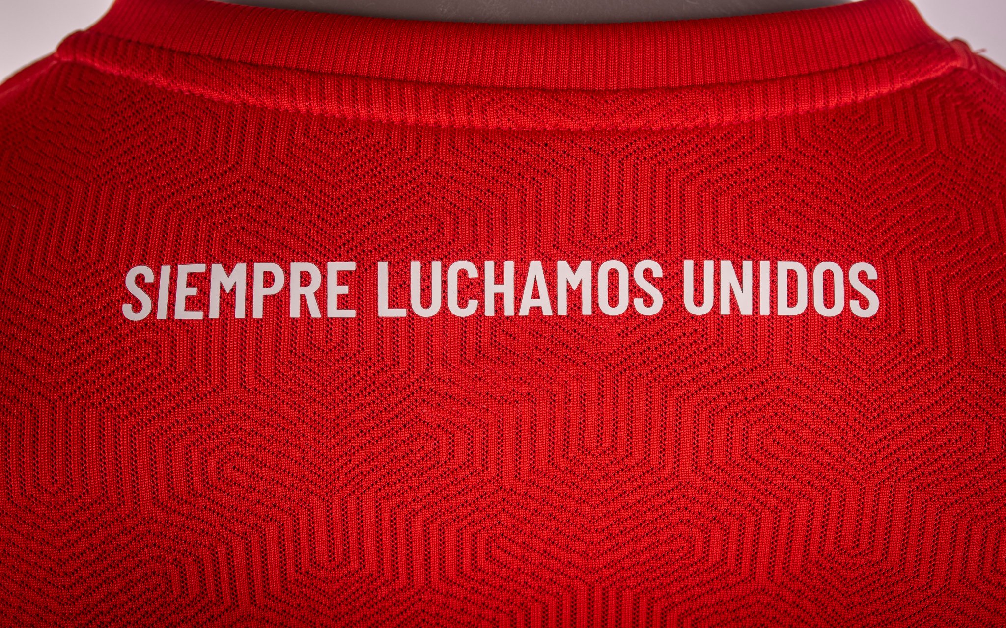 While the bespoke detail on the upper back - “Siempre Luchamos Unidos”, meaning “We Always Fight United” - and the shadow pattern are distinctive, the trim on the sides of the trunk brings to mind the Arsenal FC 2002-04 shirt, which is an image not entirely erased by the kit being completed with white shorts and red socks.