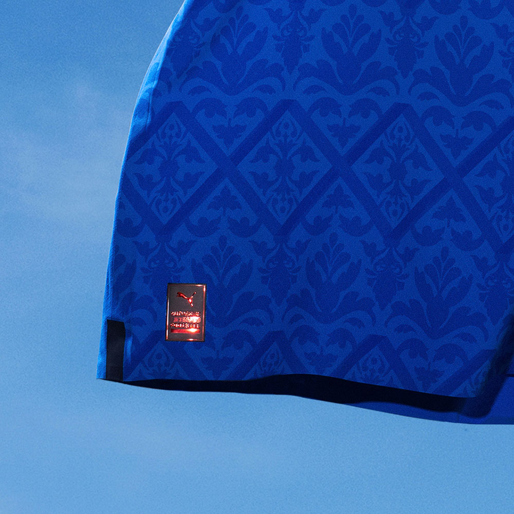 The woven fabric features a two-dimensional ripstop structure that ensures resistance while improving player movement and radically reducing weight. A further decrease in weight is achieved thanks to a pattern made specifically to reduce the number of panels, from 4-8 in the conventional design to two main panels, thus also reducing the number of seams and stitches inside the shirt. In addition, the ULTRAWEAVE jersey features a new printing technique for team and federation badges and the PUMA logo, which is lighter and more breathable than traditional transfers.
