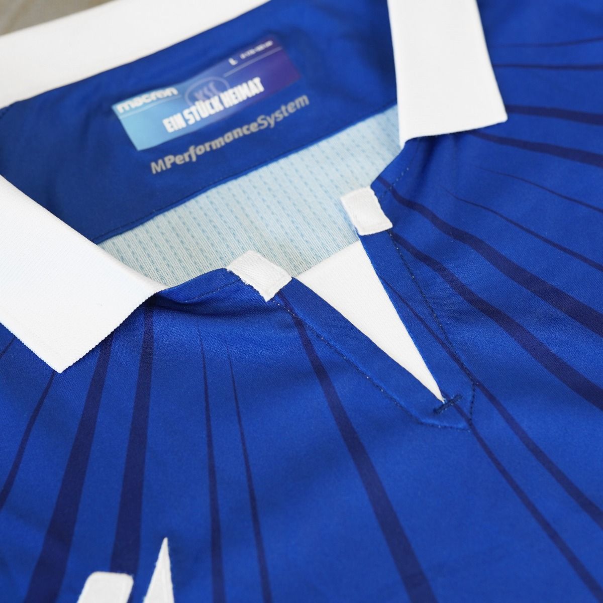 The inside backneck is customised with the club's colours, logo and the words EIN STÜCK HEIMAT (A piece of home country), while the outside shows the words MEINE HEIMAT (My home country).